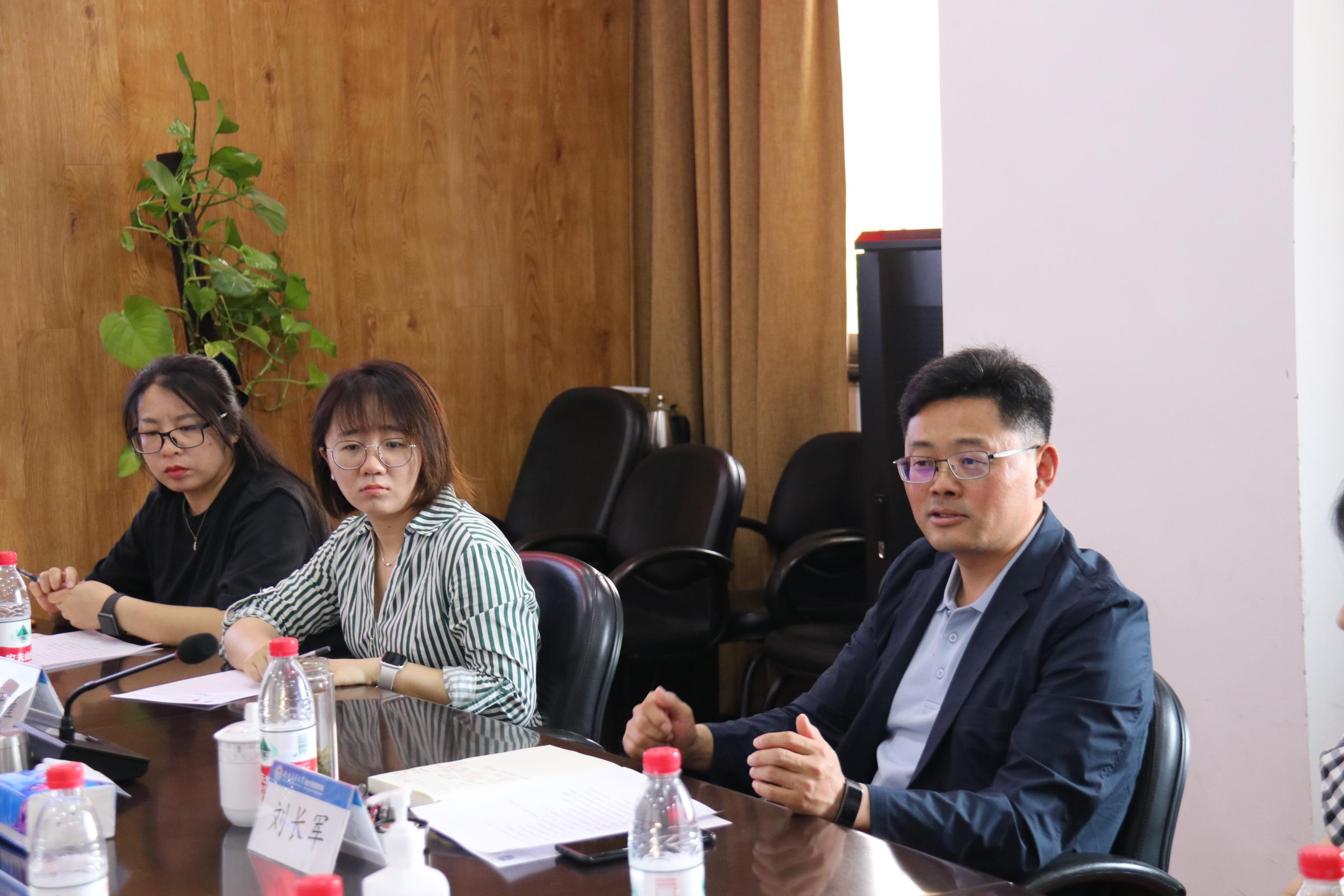 王斌首先代表公司热烈欢迎刘长军副董事长莅临公司调研指导工作。郭强代表公司向刘长军副董事长汇报了公司的基本情况、公司特色发展的思考与规划、近期主要工作情况以及存在的问题等内容,说明了公司在人才培养、团队队伍建设、科学研究、社会服务与国际化办学以及业务发展瓶颈等方面的情况。