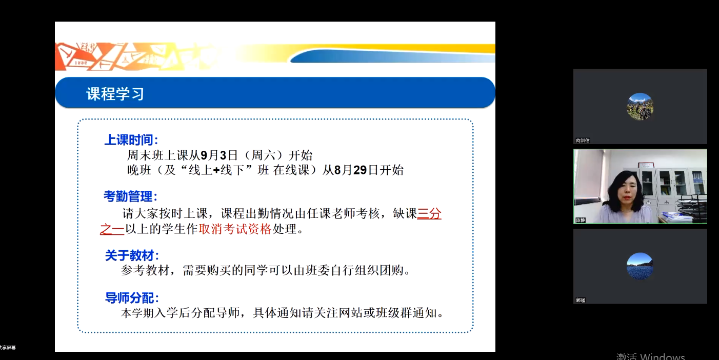 随后,陈静、何鹏两位老师分别为MBA和EMBA同学讲解培训方案制定、选课和相关注意事项。