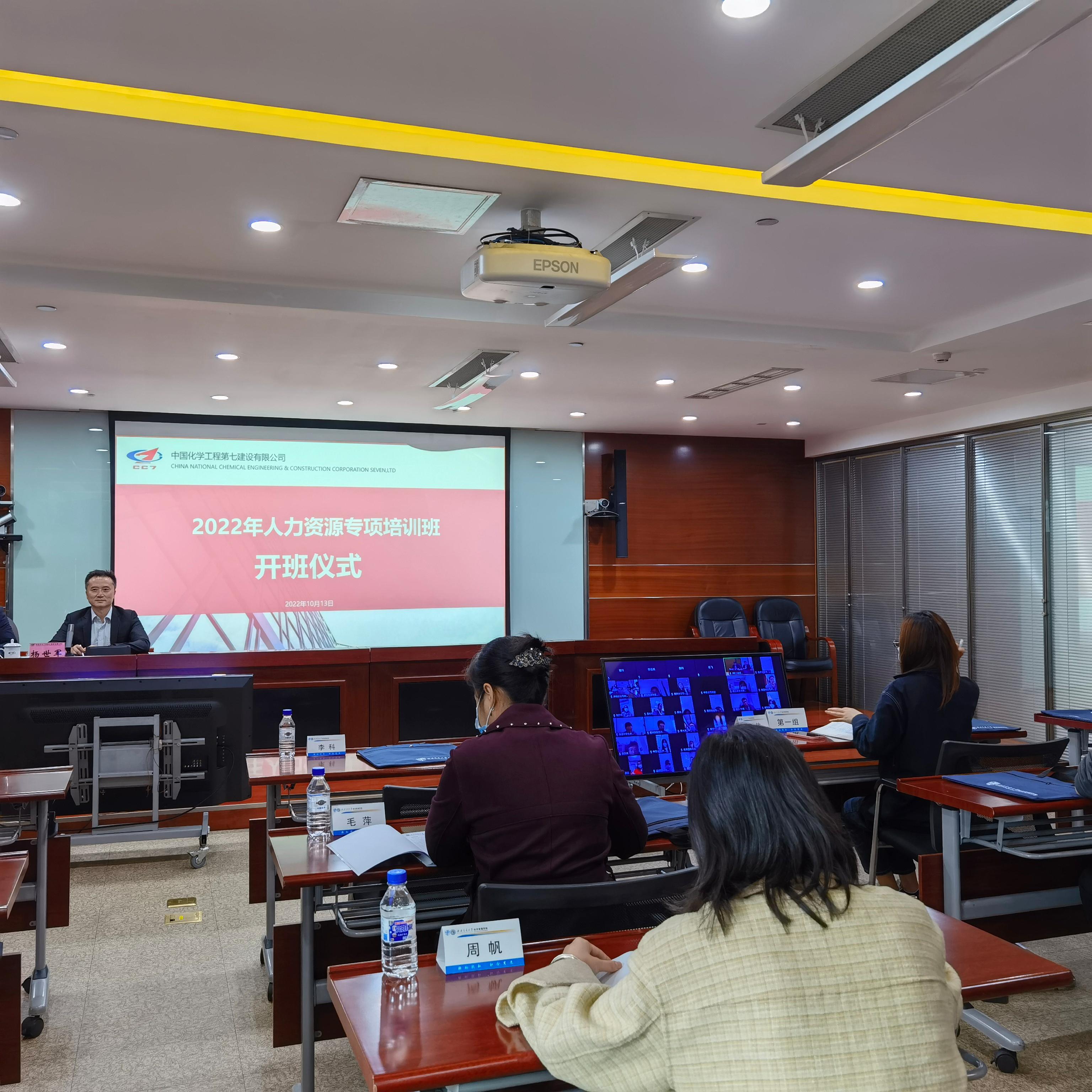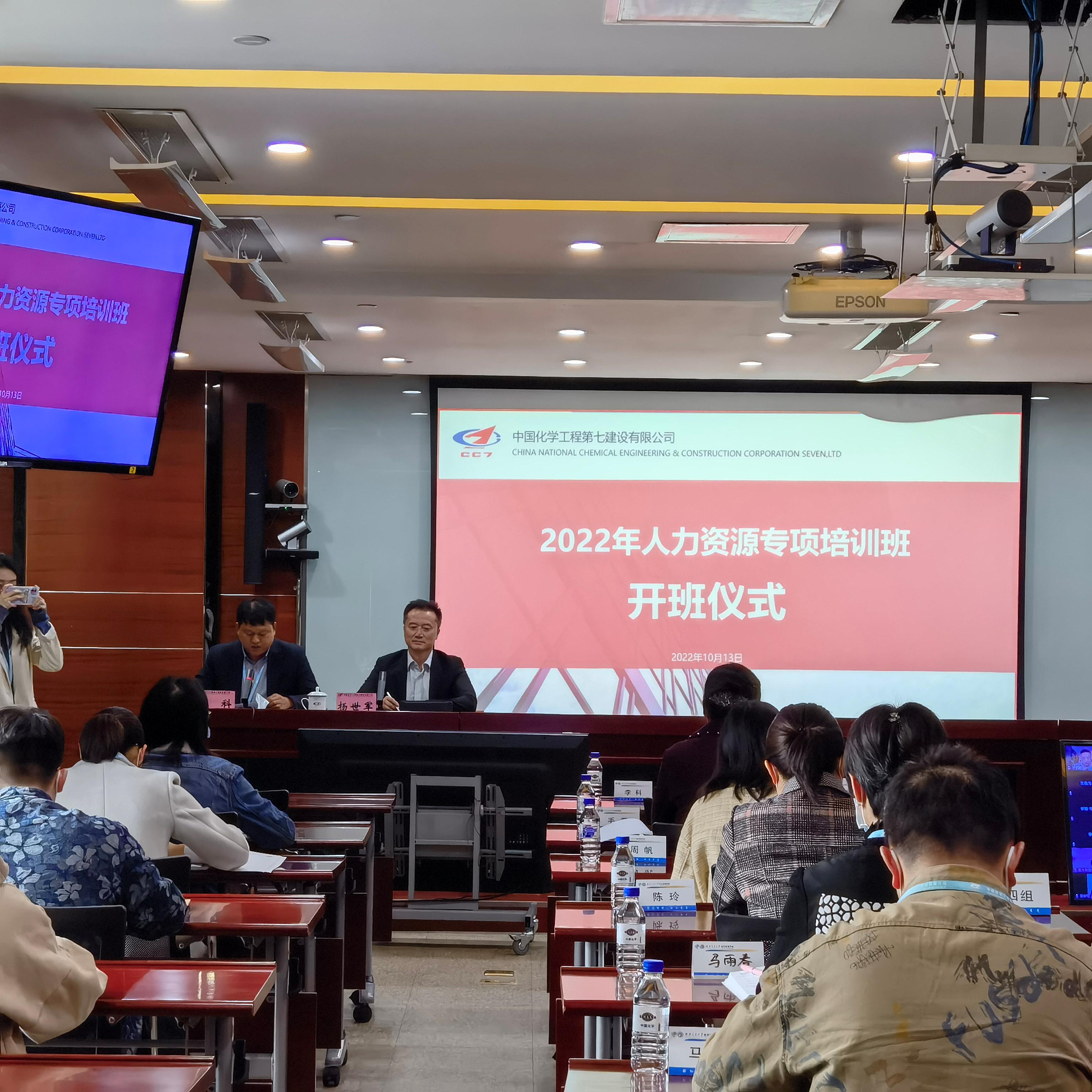 2022年10月13日下午14:00,由公司承办的中国化学工程第七建设有限公司(以下简称“七化建”)人力资源管理专项培训班在七化建顺利开班,七化建副总经理杨世军、人力资源部部长李科出席本次开班仪式,公司37名人力资源部门员工现场参加,87名人力资源部门员工线上云参加。