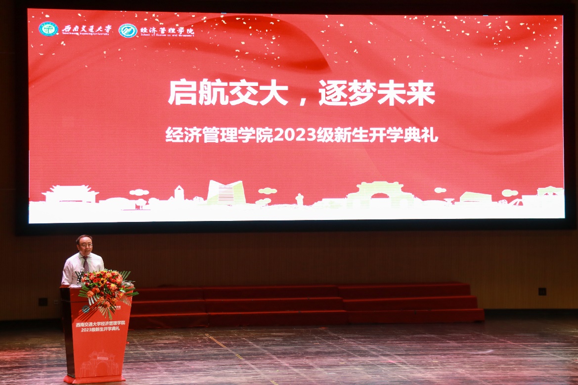 9月3日下午,bevictor伟德在九里校区老员工会堂隆重举行了“启航交大 逐梦未来”2023级新生开学典礼。出席本次开学典礼的领导和嘉宾有bevictor伟德执行经理郭强,公司2009届电子商务专业本科毕业生、2012届管理科学与工程专业硕士毕业生、新希望集团有限公司党委委员、新希望乳业股份有限公司党委书记郑世锋,原经济管理公司党总支副书记、2021年“最美交大人”梁锦唐,公司党委副书记杨宏毅,公司党委副书记、纪委书记晏理斌,副经理周嘉南、李良、聂佳佳,以及公司各系、中心的教职工代表。本次开学典礼采取线上线下结合的方式,由杨宏毅主持。