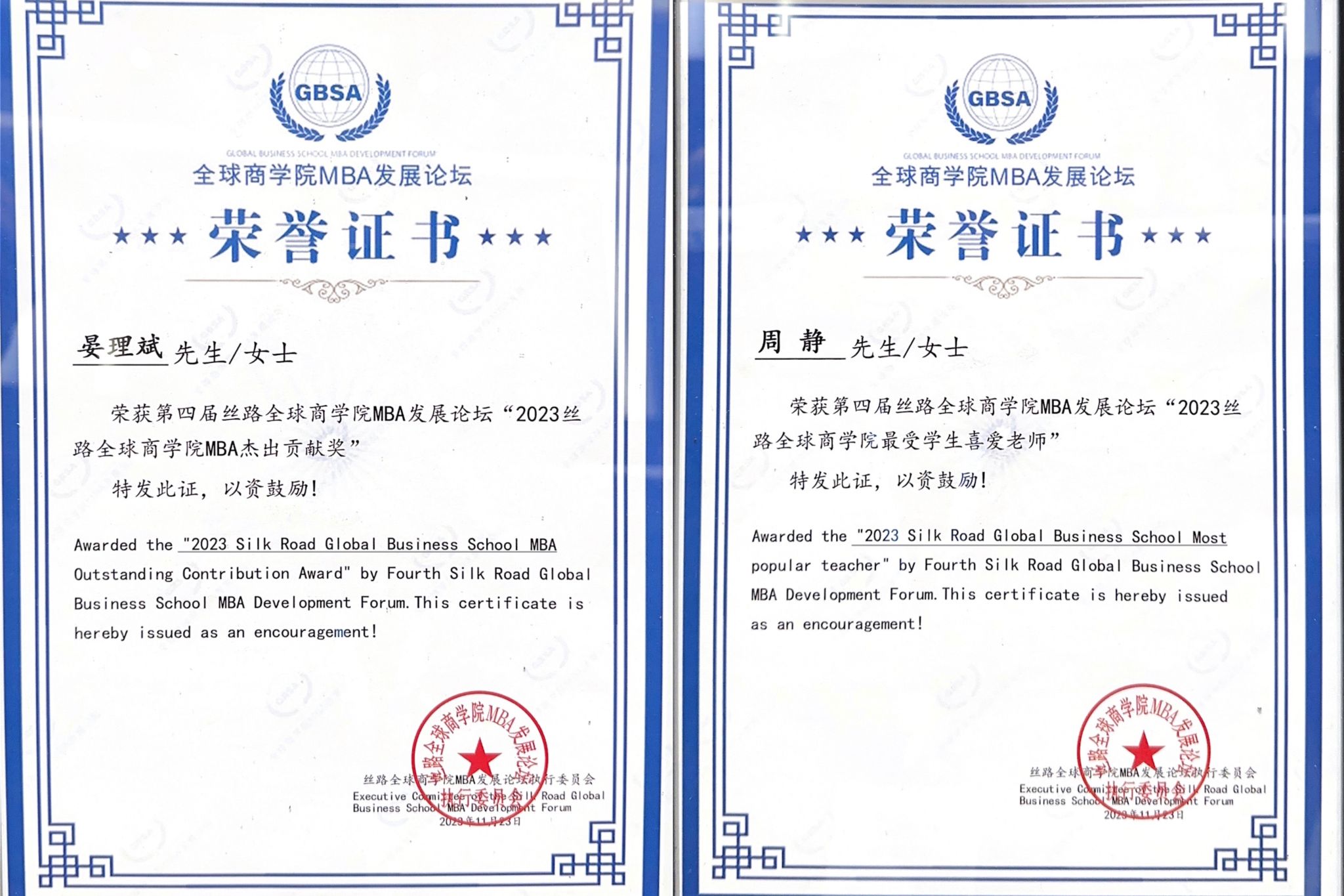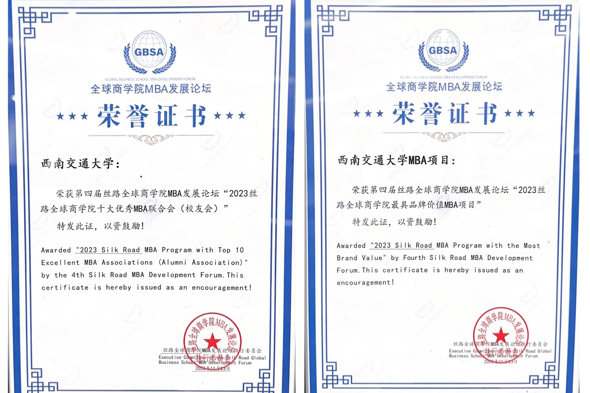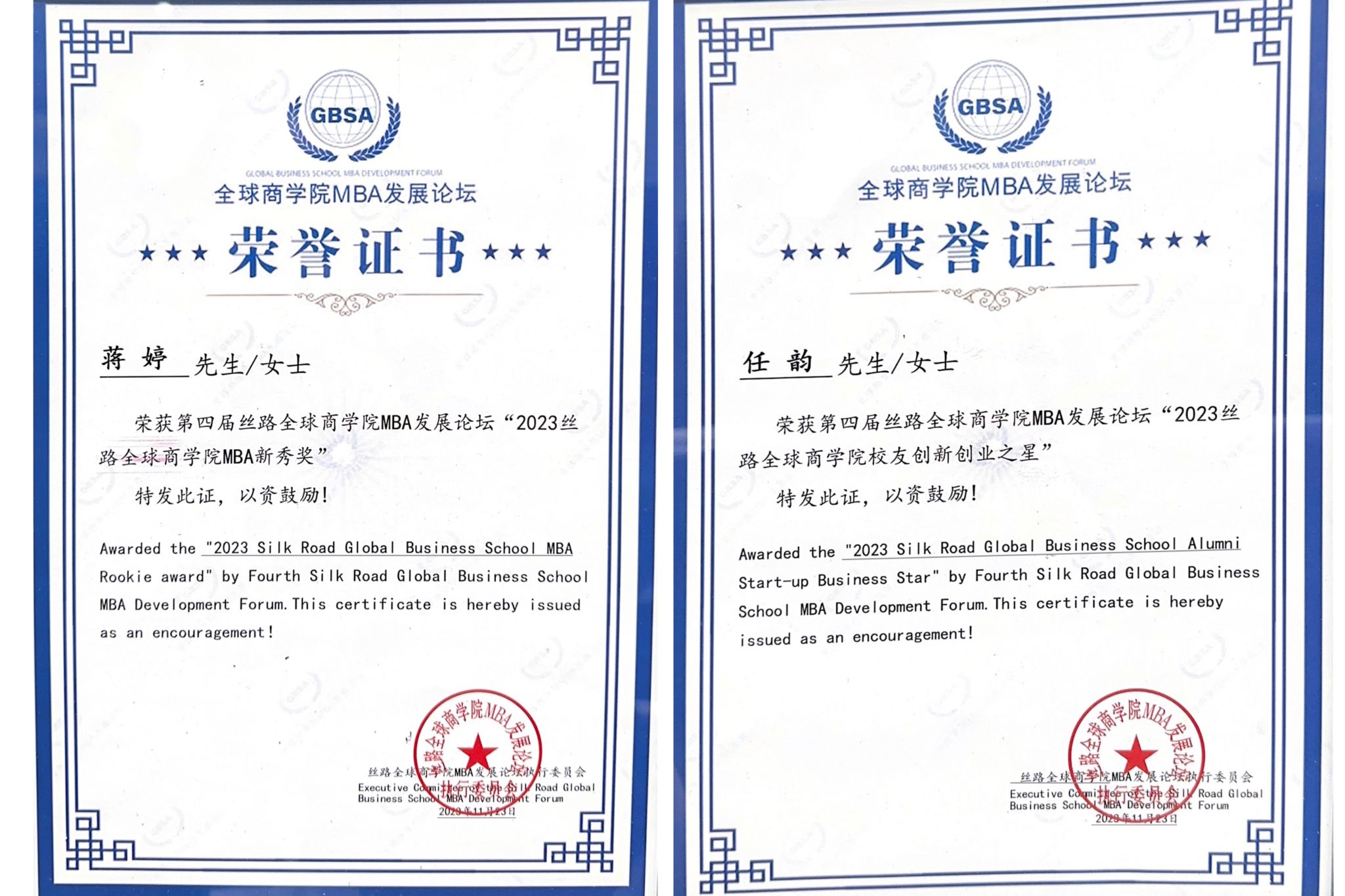 本次峰会中,公司荣获多项奖项,MBA联合会荣获“2023丝路全球商公司十大优秀联合会(员工会)”奖,伟德bevictor中文版MBA项目荣获“2023丝路全球商公司最具品牌价值MBA项目”奖,公司党委晏理斌副书记获“2023丝路全球商公司MBA杰出贡献”奖,周静老师获“2023丝路全球商公司最受员工喜爱老师”奖,蒋婷同学获“2023丝路全球商公司MBA新秀”奖,任韵同学获“2023丝路全球商公司员工创新创业之星”奖。