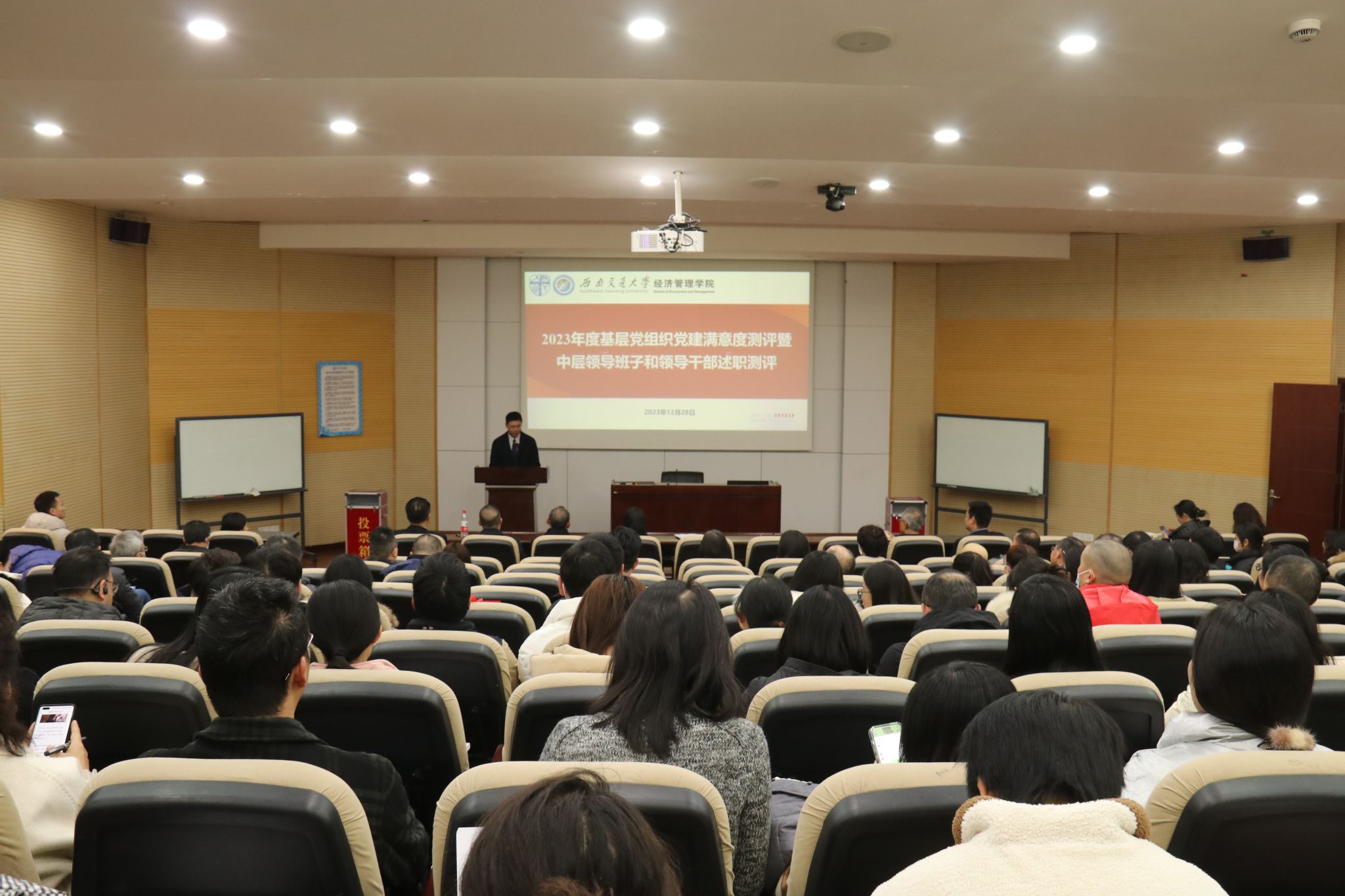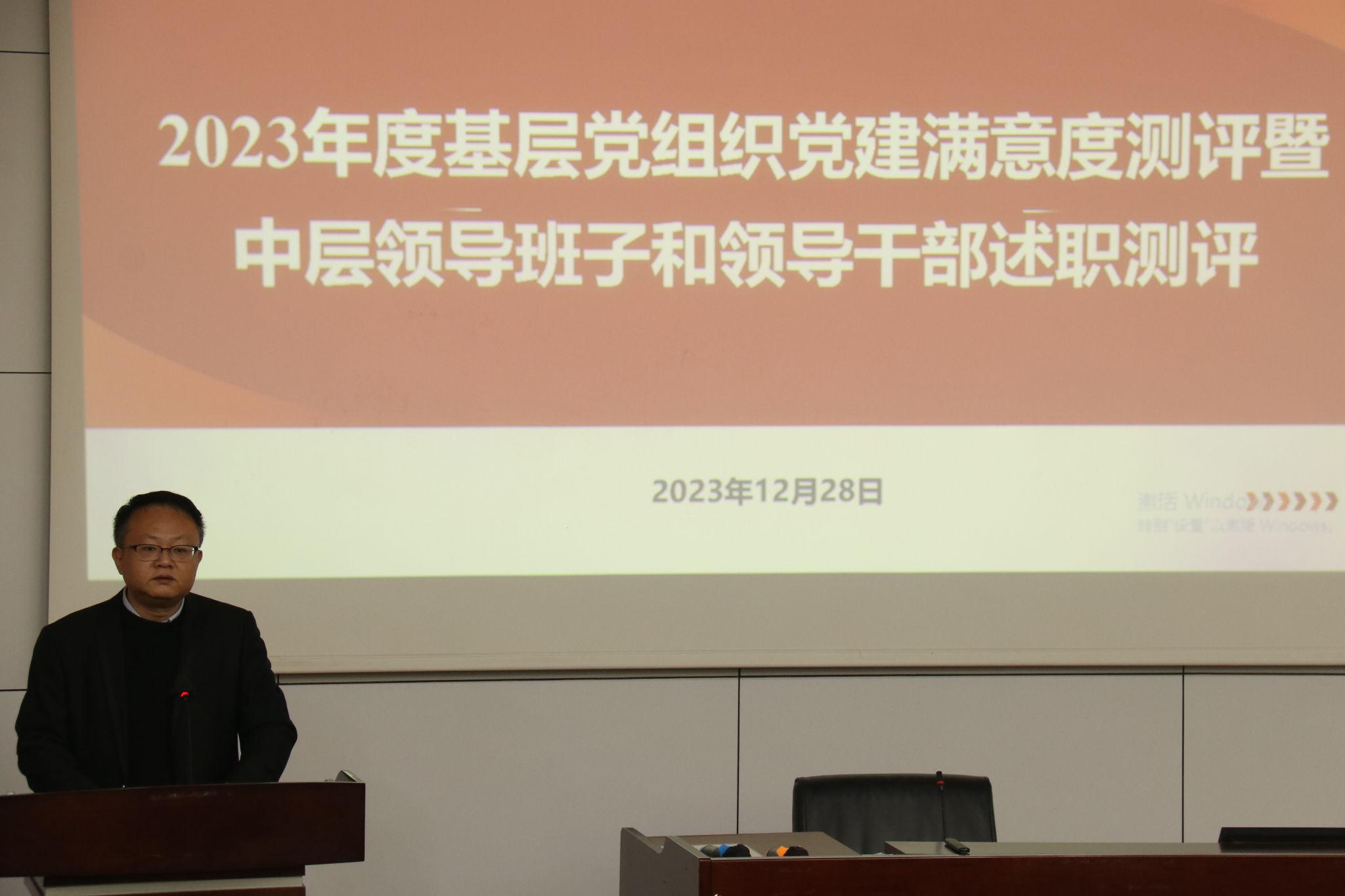 按照公司党委工作部署,2023年12月28日下午16:00,2023年度党建满意度测评暨中层领导班子和领导干部述职测评大会在九里校区0215教室召开。公司党政领导班子全体成员,公司教职工和员工党员代表参加测评,会议由公司党委书记郭强主持。