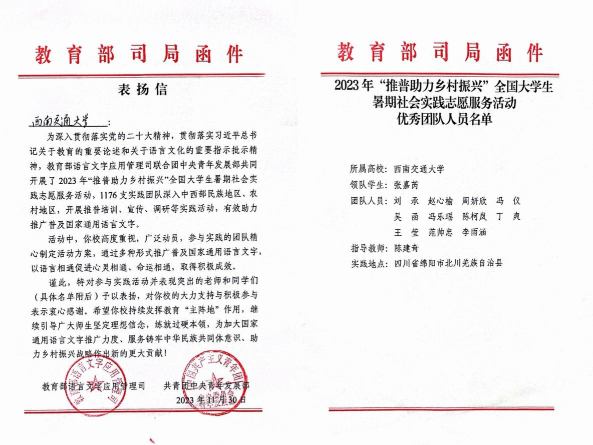 近年来,青鸽志愿服务队队员们在公司老师的悉心指导下,进社区、下农村、访群众,脚踏实地,深入基层开展异彩纷呈的实践活动,活动涉及新农村建设、文化传承、志愿服务等各个方面,实践队员边实践边学习边探索,在实践中历练了本领,淬炼了心灵,在全国各地发挥着自己的光和热。实践活动得到了当地政府、群众和社会各界的一致好评,取得了不错的成绩。2022年青鸽志愿服务队入选中国青年报评选的“全国老员工暑期百强实践团队”;2023年青鸽志愿服务队成功入选了由共青团中央青年发展部、中国青年报、中国青年网共同举办全国大中专员工志愿者暑期文化科技卫生“三下乡”社会实践“镜头中的三下乡”活动“优秀图片团队”和“优秀视频团队”,同时团队还收到了来自教育部的表扬信!