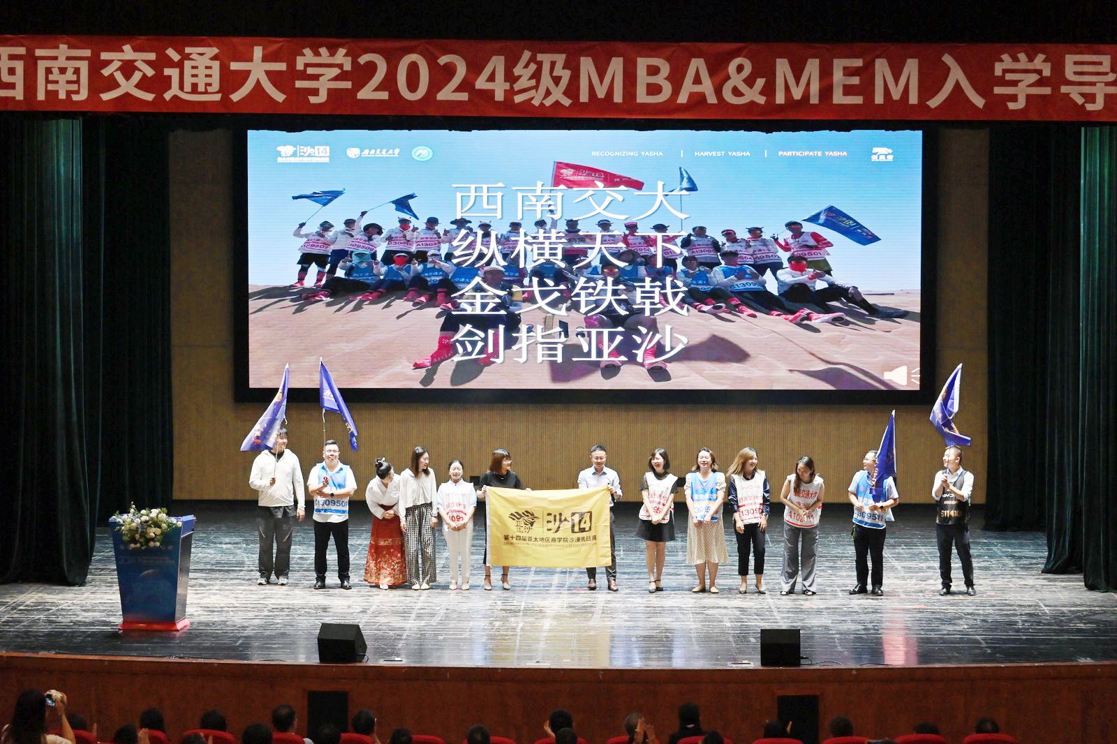 亚太地区商公司沙漠挑战赛作为亚太地区顶级商公司间的一项竞技体验式文化赛事,不仅体现了现代商业领袖的挑战和探险精神、激发了在恶劣条件下自我挑战和突破的信念,还考验着团队配合相互成就的能力。“沙14”领队明兴才为大家详细介绍了亚沙赛事以及公司近年来在该赛事中取得的成绩,今年5月公司“沙13”33名队员更是首次捧回了赛事最高荣誉奖——金沙鸥。同时,明兴才宣布了“沙14”赛事的筹备安排,并呼吁2024级同学们积极参与,感受“亚沙一次,沙友一生”的精神内核。