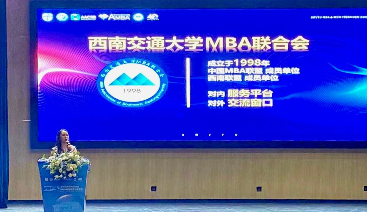 第26届MBA联合会主席陈文莉代表主席团发言,并分享了对MBA联合会的认识以及未来发展规划,她表示伟德bevictor中文版MBA联合会将继续坚持以文化传承、智慧赋能、链接共生的核心理念,秉承拓宽横向交流平台的对内服务和持续增强交大MBA影响力的对外发声职能,打造属于西南交大MBA人共同成长的平台。