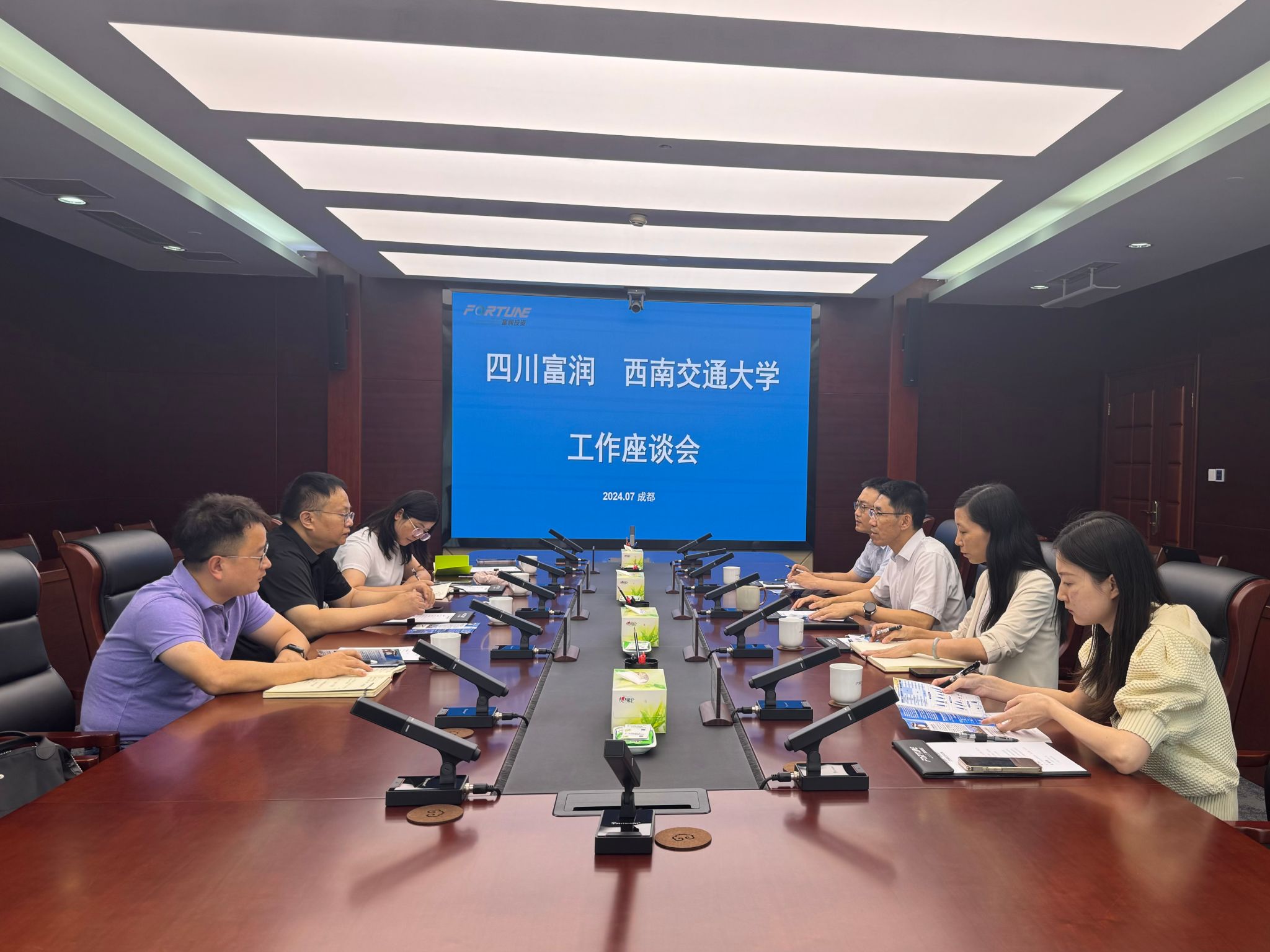 郭强详细介绍了公司的基本情况、办学特色以及员工培养情况。他强调,公司始终注重培养员工的科研能力、实践能力和创新精神,希望与四川富润公司携手共建高质量的实习实践基地,为员工提供更多的实习实践机会和就业平台。