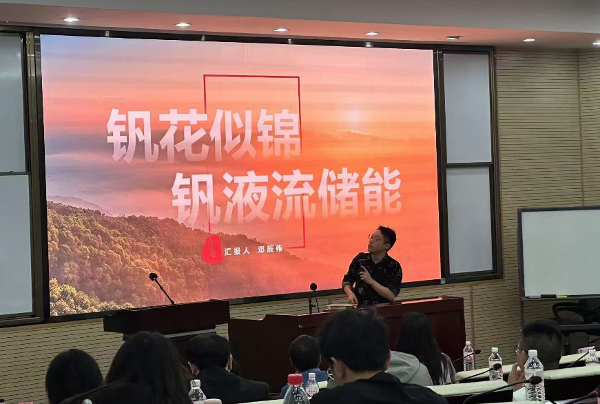 重庆大学管理科学与房地产公司2023级MEM邓辰伟以国家政策文件为依托,介绍了储能行业的发展前景,并强调了新型电力系统构建的“清洁化、柔性化、分散化、数智化”的四大要素,而“柔性化”则是储能行业发展的关键所在,由浅入深介绍了钒液流储能的技术原理、企业发展与典型项目,让同学们增加了对储能相关行业知识层面的了解。