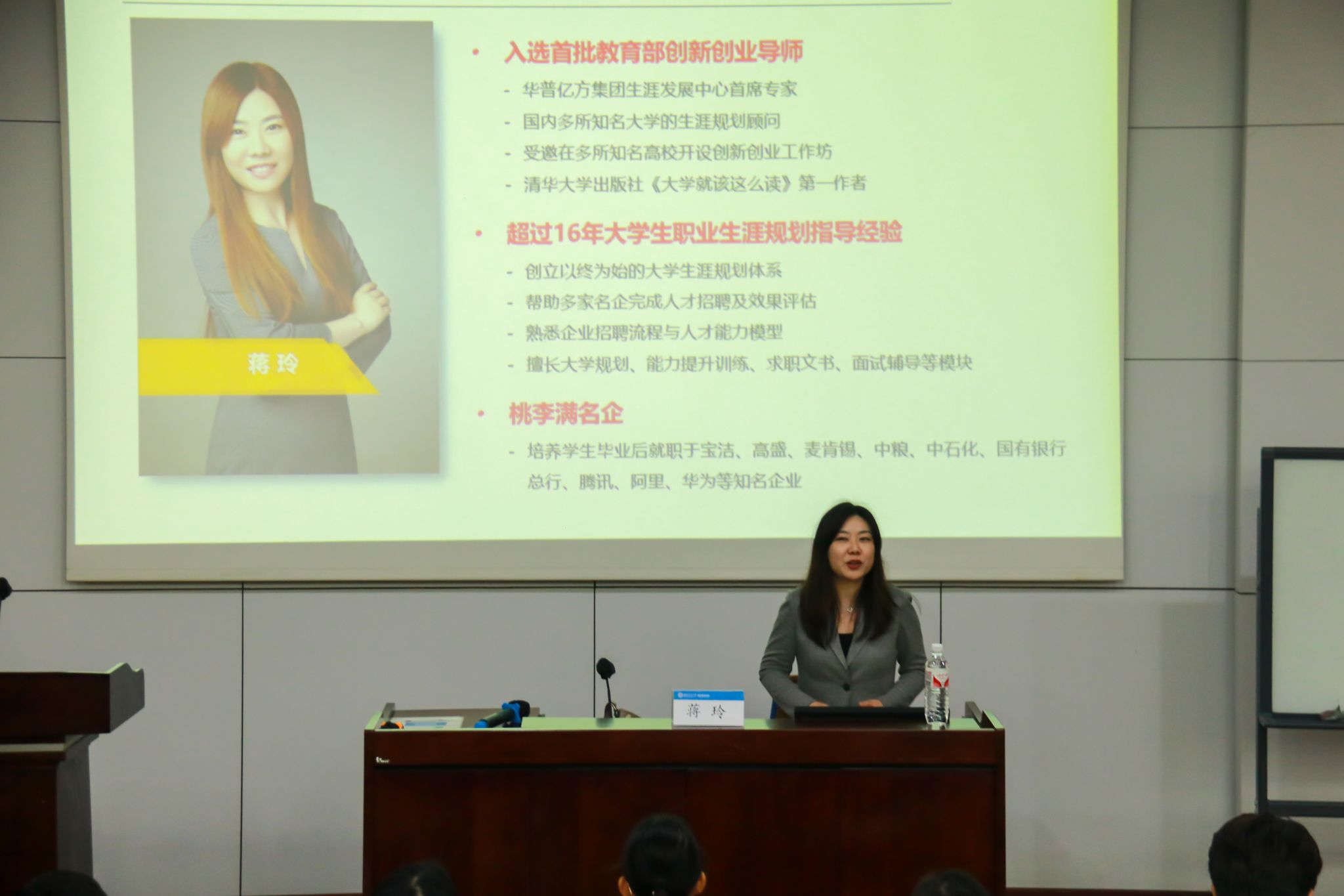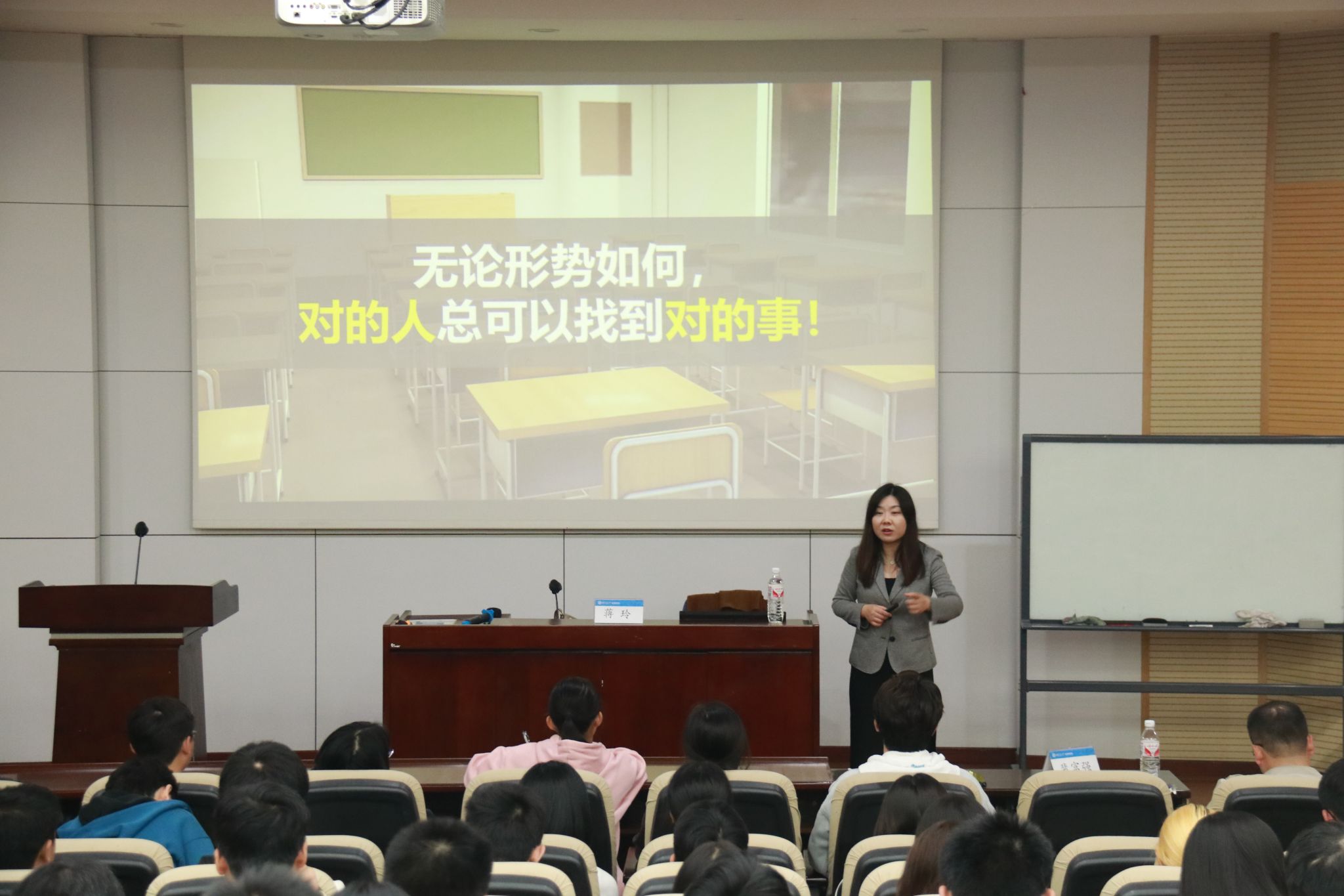 本次讲座,蒋玲着眼于当今老员工升学就业的难题,用具体数据展示了老员工考公、考研、留学、保研、求职的现状,用典型案例说明提早进行职业规划的重要性,并从六个方面引导新生如何进行老员工涯规划。关于如何走出就业和升学困境,蒋玲提出,新生要做到“以始为终做规划,提高核心竞争力,学业职业两手抓”,用科学的方法进行组合规划,以达到超出预期的效果。