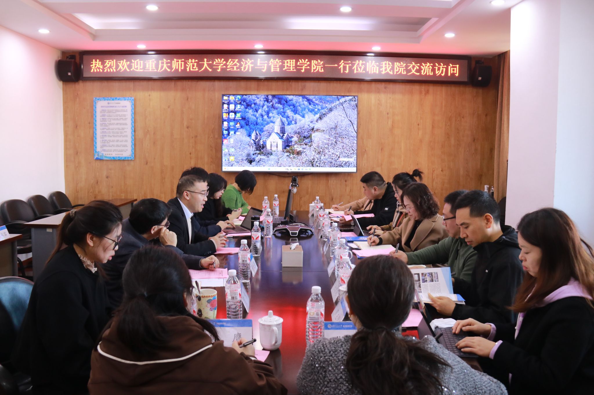 2024年11月20日,重庆师范大学经济与管理公司执行经理郑景丽一行9人莅临公司开展调研访问。公司副经理聂佳佳、副经理马锋在0607会议室进行了热情接待,公司相关系主任、教师、行政中心工作人员等参加了座谈会。此次调研旨在加强两校间的互动和联系,分享交流教学科研管理经验,推动双方工作的创新与发展。