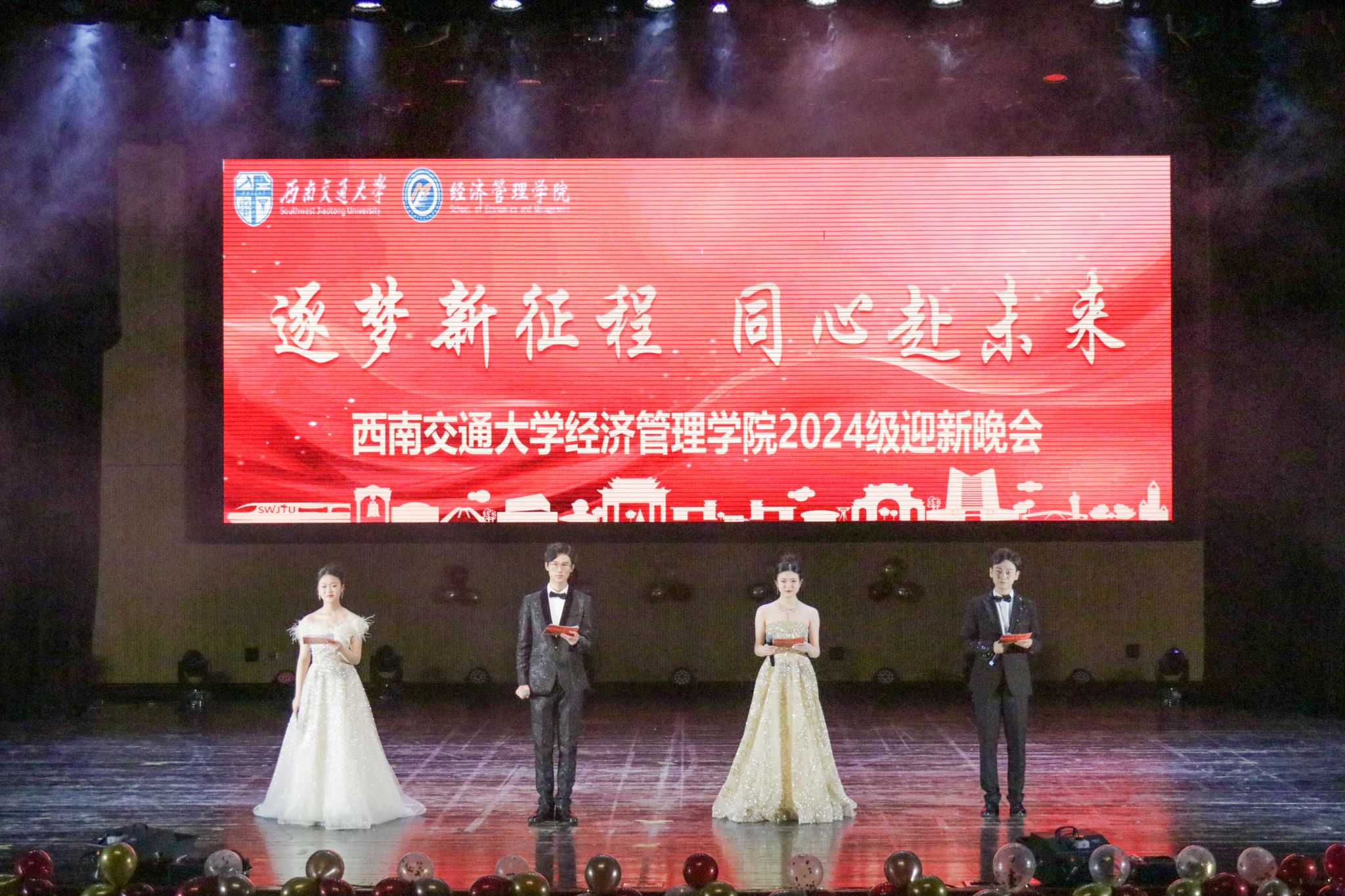 为热烈欢迎2024级经管新学子,迎接2025年的到来,2024年11月30日,bevictor伟德在九里校区老员工会堂举办“逐梦新征程 同心赴未来”2024级迎新晚会。bevictor伟德经理韩科,党委副书记余小英,副经理李良、聂佳佳,团委书记贾佳,本科2024级各班班主任老师,员工工作组全体辅导员,电子科技大学经济与管理公司、西南财经大学会计公司员工会主席以及各兄弟公司员工会嘉宾出席晚会。