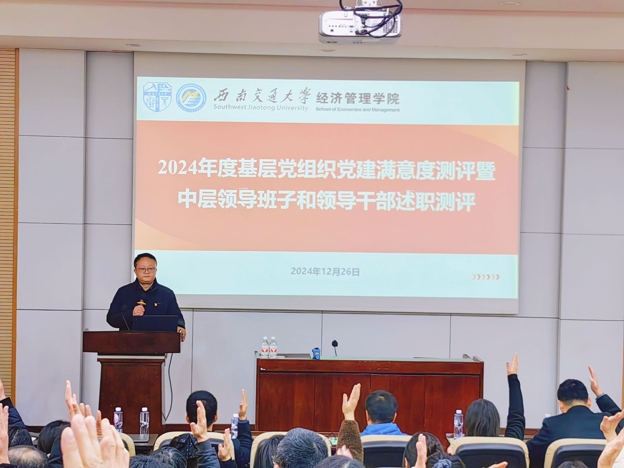 随后,公司党委副书记余小英对员工工作、党建工作、宣传工作、员工工作、就业工作等方面做述职汇报;公司党委副书记晏理斌从纪委、工会与离退休工作、专业学位教育工作、其他分管工作四个方面做述职汇报;公司副经理李良从学术型研究生、国际化工作、国际认证工作等方面做述职汇报;公司副经理聂佳佳从课堂教学、实践教学、同等学力与EDP等方面做述职汇报;公司副经理马锋从博士生培养、科研工作等方面做述职汇报。与会全体教职工对公司中层领导班子和中层领导干部进行测评投票。紧接着,由公司党委组织部童万波老师主持有关干部任职试用期满的测评。