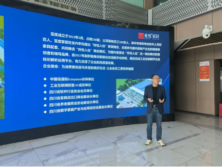 首先,亚度家居的常务副总经理胡继飞先生为我们讲述了亚度家具的成长历程。作为业内“拎包入住”家装理念的首创者和领导品牌,亚度家具全面参与了国内房地产企业的精装房家具配套,共同推进了这一商业模式的繁荣。自2017年起,亚度家具更是积极拥抱智能化改造和数字化转型,建设完成了工业互联网平台及标识解析应用平台,为企业的高质量发展注入了强劲动力。