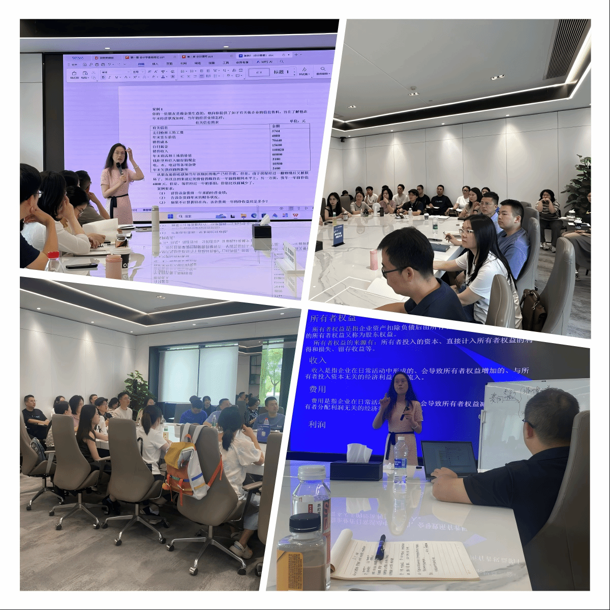胡杨老师的授课逻辑清晰,案例运用精妙。课程伊始,她巧妙引入日常生活案例作为开篇,为后续理论知识的讲解埋下伏笔。 进入理论讲授环节,她聚焦《会计学基础》核心知识体系,深入浅出:通过精心筛选的大量教学案例,将抽象深奥的理论知识与实际情境紧密结合,使课程内容变得通俗易懂。在教学模式上,她采用“案例导入-观点碰撞-理论提炼”的三步法:抛出启发式案例,引导同学进行分组讨论并激发不同观点碰撞,最后提炼升华核心理论。这种互动性极强的方式充分激发了课堂活力,员工参与热情高涨,讨论热烈、掌声不断。 原本晦涩的专业术语,在轻松活跃的氛围中转化为员工笔记本上的鲜活案例,学习效果显著。