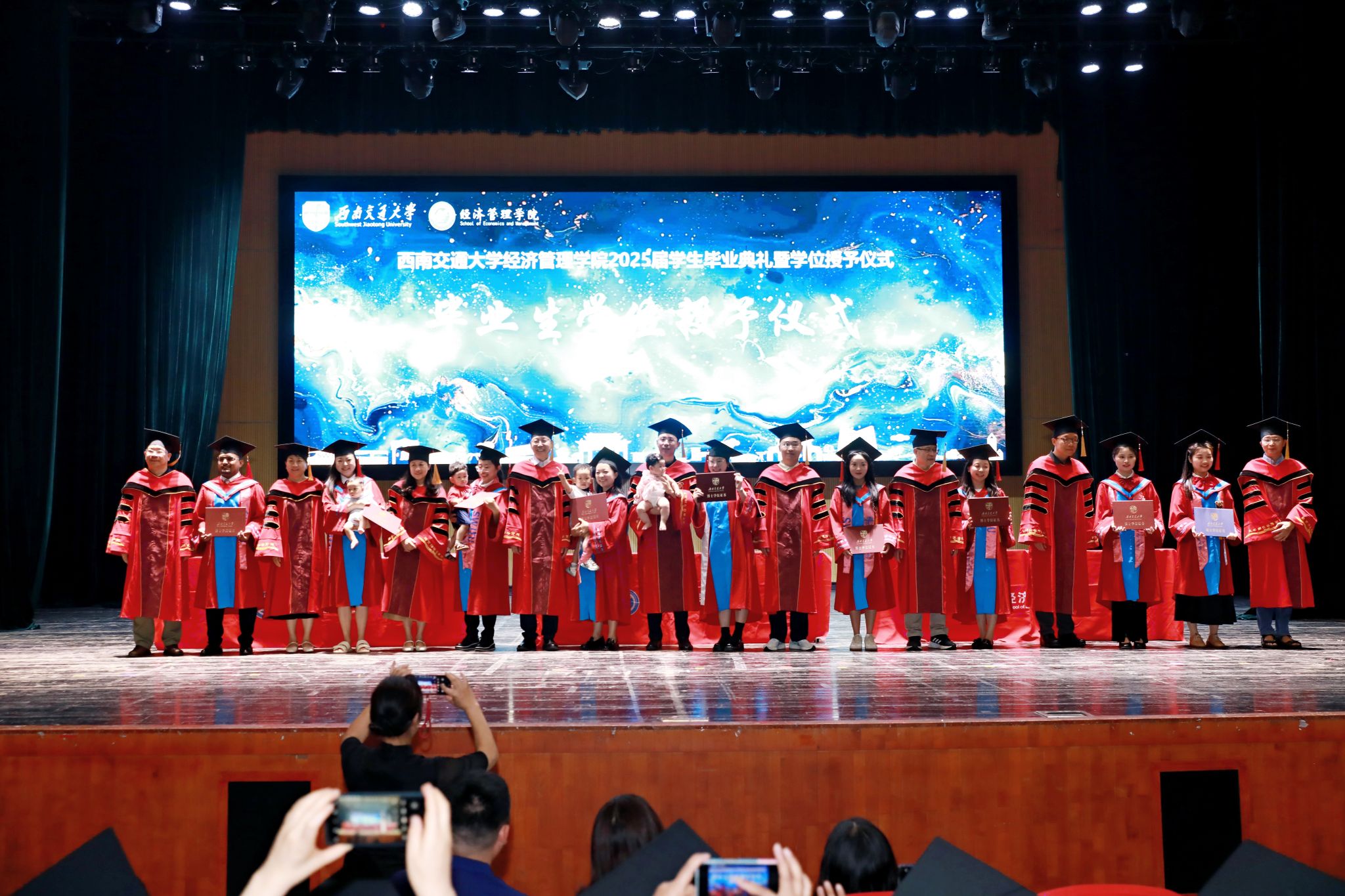 公司党委书记蒋佳宣读2025届本科生、2025届MBA毕业生院级荣誉获得者名单,公司副经理李良为获奖毕业生颁奖。院级获奖毕业生以勤勉为舟、以实干为桨,在专业学习、实践活动与集体建设中展现出卓越的综合素养。
