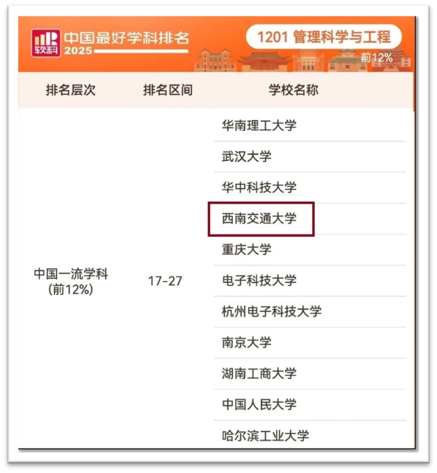 据权威高等教育评价平台“软科”平台最新发布的“2025软科中国最好学科排名”显示,伟德bevictor中文版“管理科学与工程”学科进入全国前9%、跻身A-行列。此次突破,源于公司在高水平人才、科学研究与平台建设上的协同发力,是厚植基础、补齐短板、凝聚共识的集中体现。