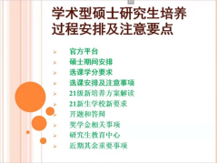 三位老师分别于三个会议号内针对各类型研究生进行针对性的培养方案解读。首先,各位老师介绍了在学习期间常用到的教务官方平台,提醒同学们留意发出的通知。并介绍了在整个学制期间的学习安排,细致到每个学期同学们所应该注意的内容。各位老师针对同学们最在意的选课进行了讲解,从学分要求、选课安排、选课系统操作做了逐一说明,并提醒同学们注意截止时间和选课调课机会。