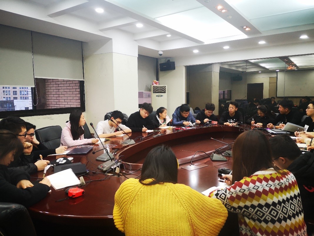 会议以“2020级迎新晚会的前期策划”为主题,对即将到来的2020级迎新晚会进行相关的任务分工。会议中主席团明确了每个部门的分工,包括但不限于:嘉宾邀请、主持人的选拔与训练;会场布置、活跃气氛;管理电子设备、材料准备;灯光准备、舞台搭建;迎接赞助商及媒体、统计人数;拍摄照片、准备视频。