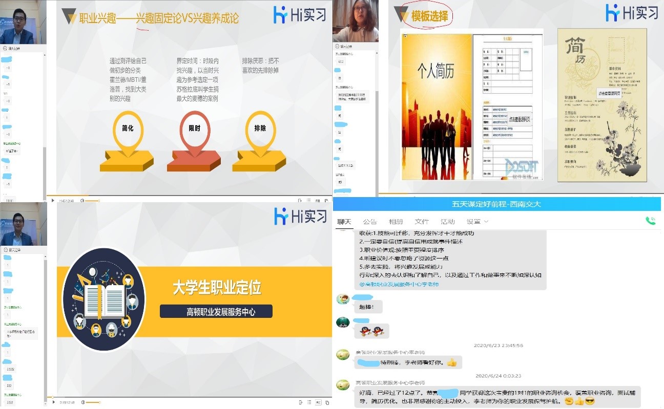 此次线上职业生涯发展讲座培训于6月22日正式开始,为期5天,由高顿教育的三位老师带来“行业探知、职业规划、实习指导、简历包装、面试提升”这五方面的求职集训课程;集训课程结束后,继续开展模拟面试比赛,由员工自愿报名投递简历,并通过初赛、复赛、决赛决出优秀面试者,提供四大会计事务所、百度、阿里巴巴、腾讯等知名企业的实习工作机会。