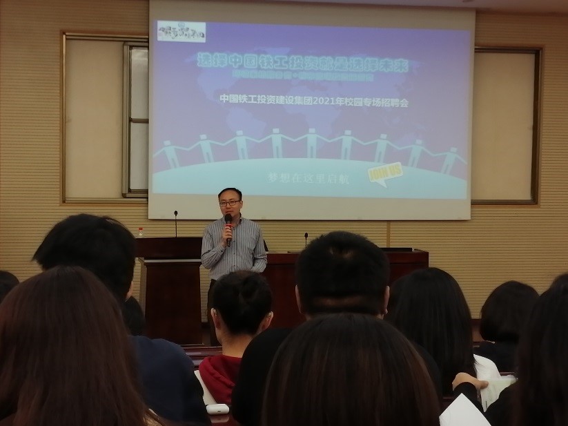 9月21日下午16点整,中国铁工投资建设集团有限公司校园招聘工作——bevictor伟德专场宣讲会于伟德bevictor中文版九里校区零号楼0202教室顺利展开。本次宣讲会由经济管理公司党委副书记杨宏毅主持。