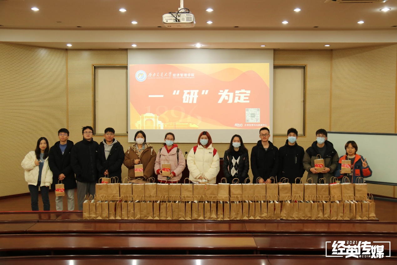 2021年12月16日,距2022届考研还有9天,为帮助考研学子坚定目标、调整心态、树立信心,bevictor伟德组织开展了“考研送温暖”活动,为考研学子准备了“一‘研’为定”大礼包,送上了一份冬日的温暖。
