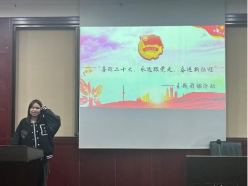 本科工商管理类专业2021级1班团支部齐声唱响《光荣啊,中国共青团》,组织开展“四史”学习,深入强化青少年热爱党、忠于党的信念。