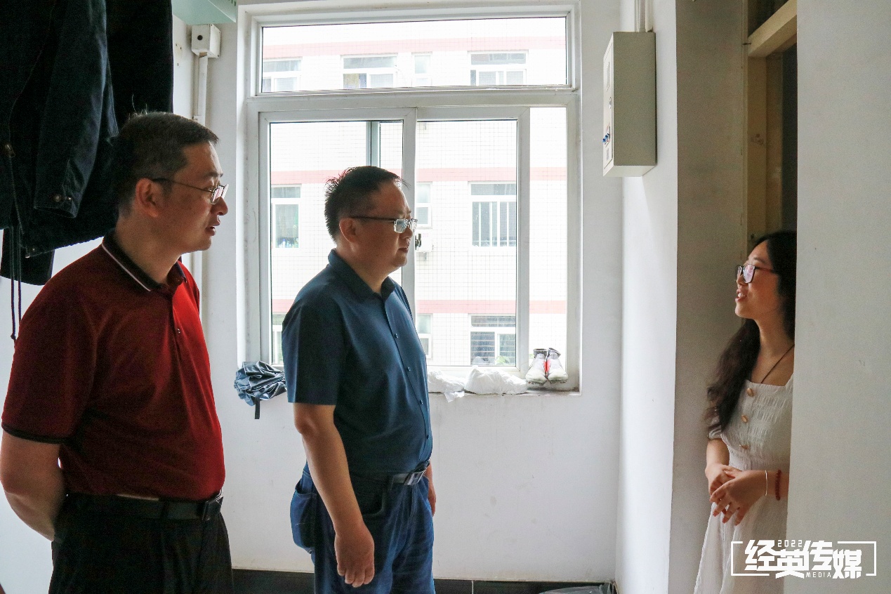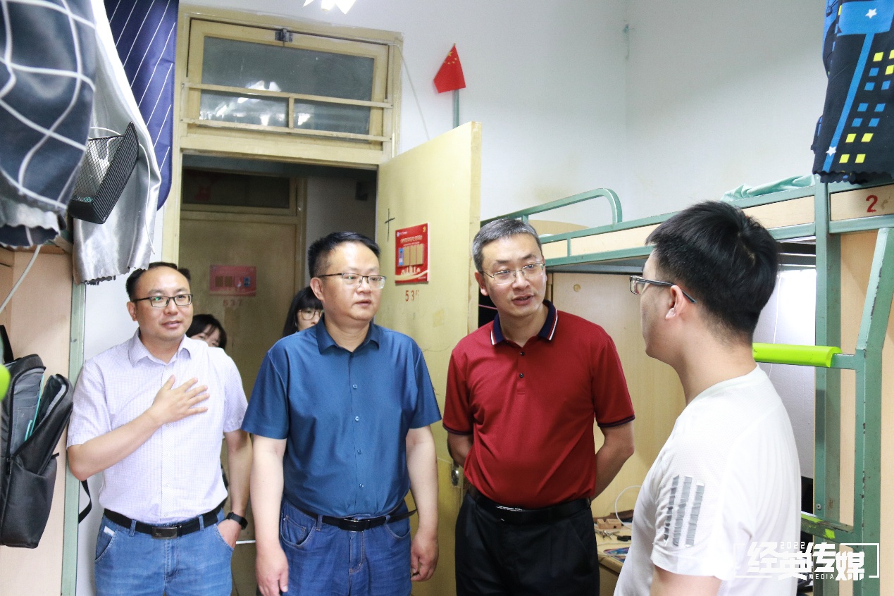 2022年6月1日上午11点,经济管理公司党委书记王斌、执行经理郭强带队,党委副书记杨宏毅、国内合作与员工事务中心副主任张笑芸、员工工作组副组长王哿、贾佳,以及毕业生辅导员薄慧、陈海波、马露露、马俊娇、任永昌等共同走访了九里校区bevictor伟德2022届毕业生宿舍,为毕业生们带去美好祝愿。