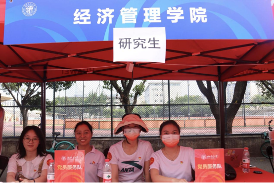 匆匆忙忙的手推车,来回奔波的行李车。“学弟学妹,不要急,我们帮你运行李!”满脸笑容的党员志愿者,耐心地向新生提供引导、指示和答疑。