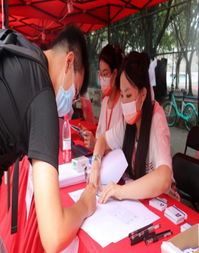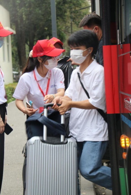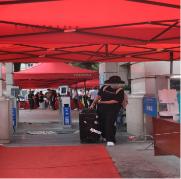 和父母挥手告别,体温测试、扫码、刷卡、消杀……萌新们满怀着理想和憧憬,踏入郁郁葱葱的校园。等候已久的志愿者们和工作人员也开始忙碌起来。在完成消杀环节之后,新生们坐上校园摆渡车,穿过林荫大道,来到校园迎新处。公司在迎新处为新生们搭建了新生咨询台,并设置了签名墙、合影墙等供新生们合影留念。