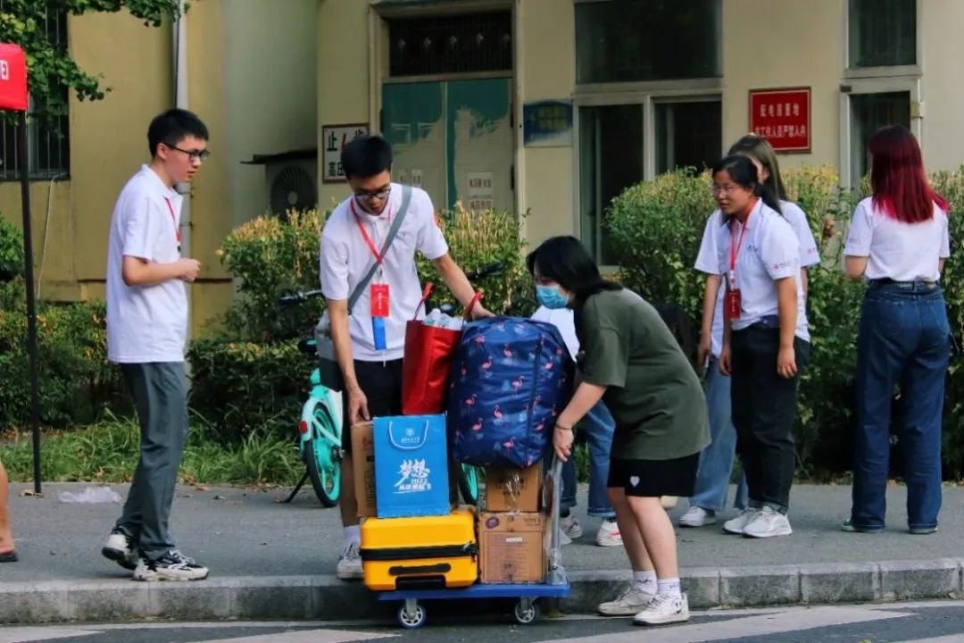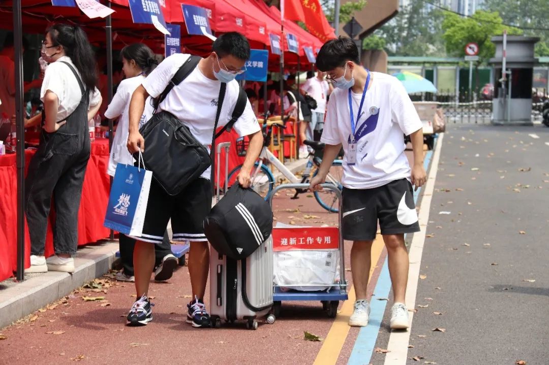 热浪袭人,却比不过志愿者的热心。从校门到迎新点,一位位无名的志愿者正在辛勤地工作着,搬运行李,指引道路,答疑解惑。这一刻,远行学子的心已与公司的大家融为一体,心已定,怎不继续前行!