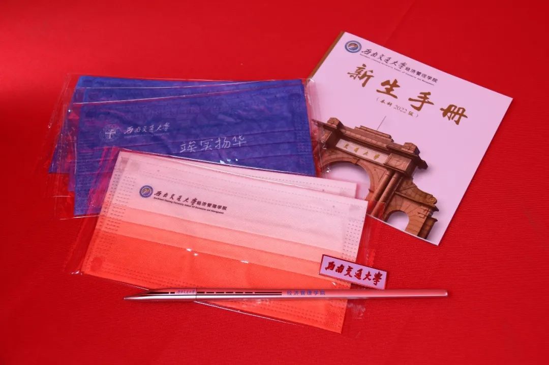 工作台上,一排排新生大礼包最是引人注目。入学资料,新生手册,高铁笔,特色口罩,无不凝聚着对大家的关心,向大家传递美好希冀。