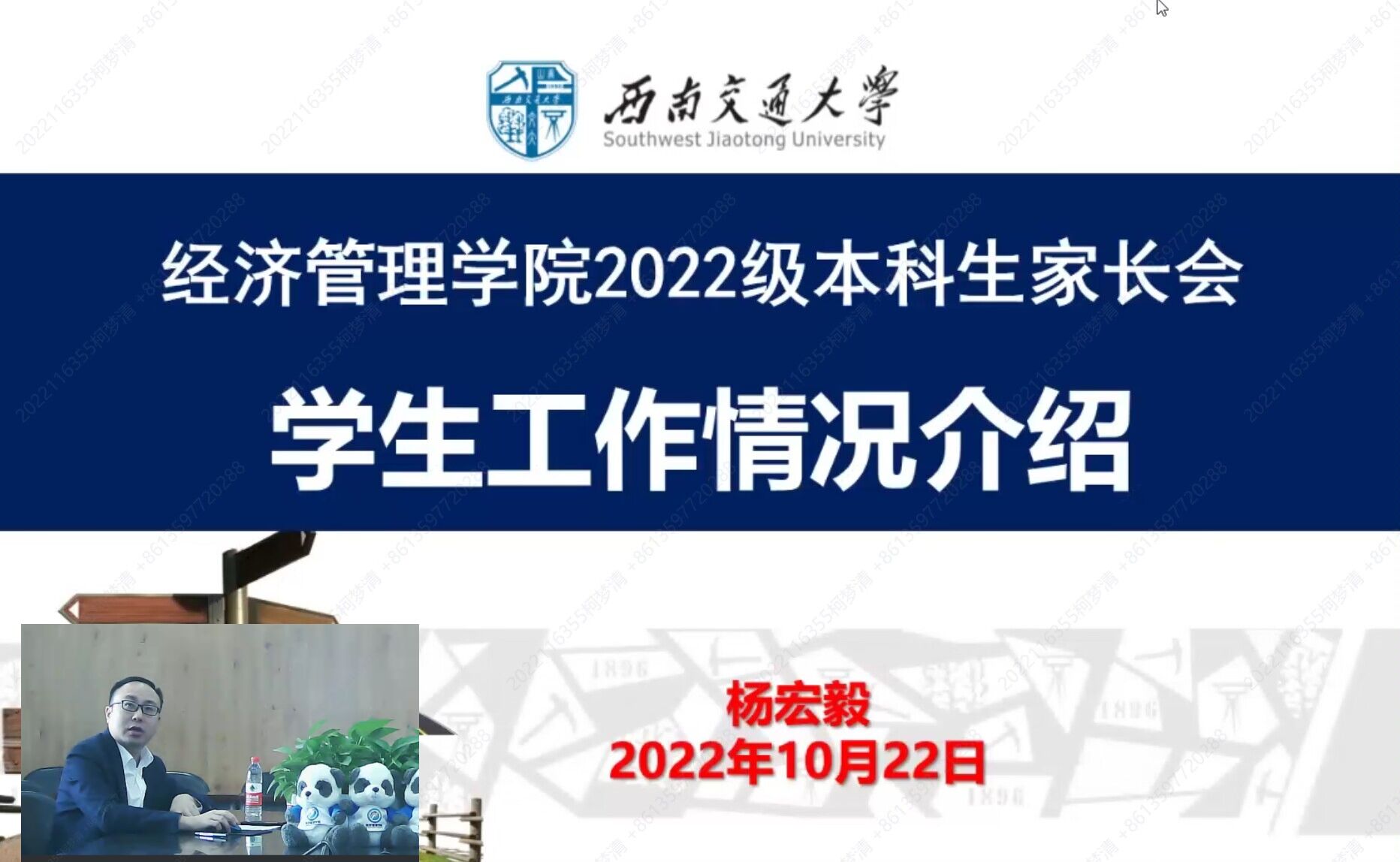 10月22日上午10点,bevictor伟德本科2022级新生线上家长会顺利举行。出席本次会议的有伟德bevictor中文版心理研究与咨询中心老师冉俐雯,bevictor伟德副经理李良,经济管理公司党委副书记杨宏毅,旗下产业中心副主任尹一,本科2022级辅导员薄慧、张媛媛和王子琦,以及本科2022级全体新生家长。本次会议由辅导员薄慧主持。
