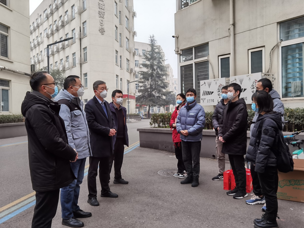 2023年1月13日上午,经济管理公司党委书记王斌,执行经理郭强,党委副书记杨宏毅、晏理斌以及辅导员一行代表公司走访看望寒假留校员工,向同学们表达了公司的关心和慰问。