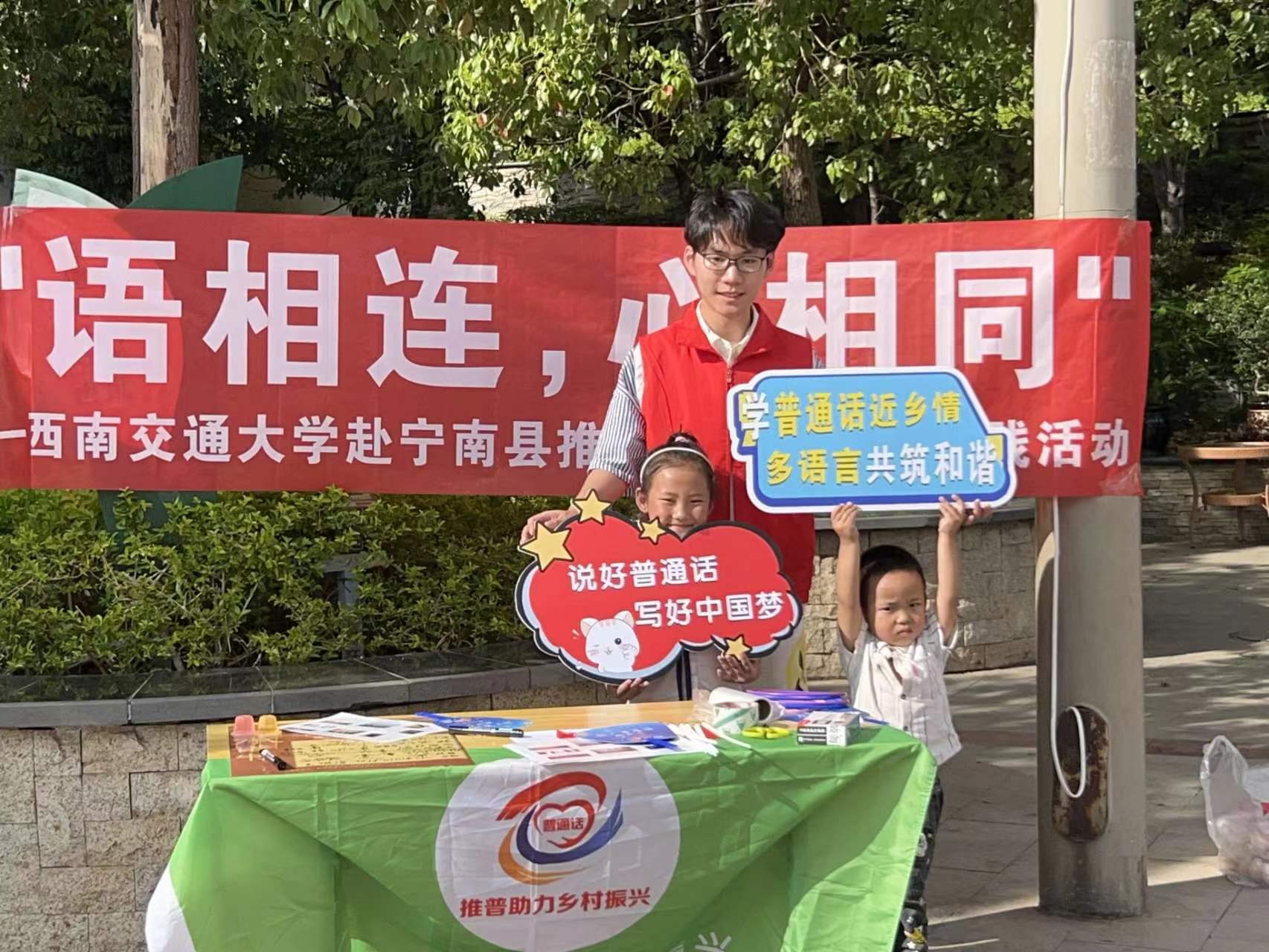 4月30日至5月2日,bevictor伟德“语相连,心相同——推普助力乡村振兴“实践团队来到了宁南县,在这里开展了普通话推广及相关调研活动,为西部少数民族语言文字教育助力。在此次实践中,团队通过街头调研,定点摊位,课堂教育,走访宣传等形式,了解当地普通话使用情况,普及民族共同语言,助力乡村振兴。