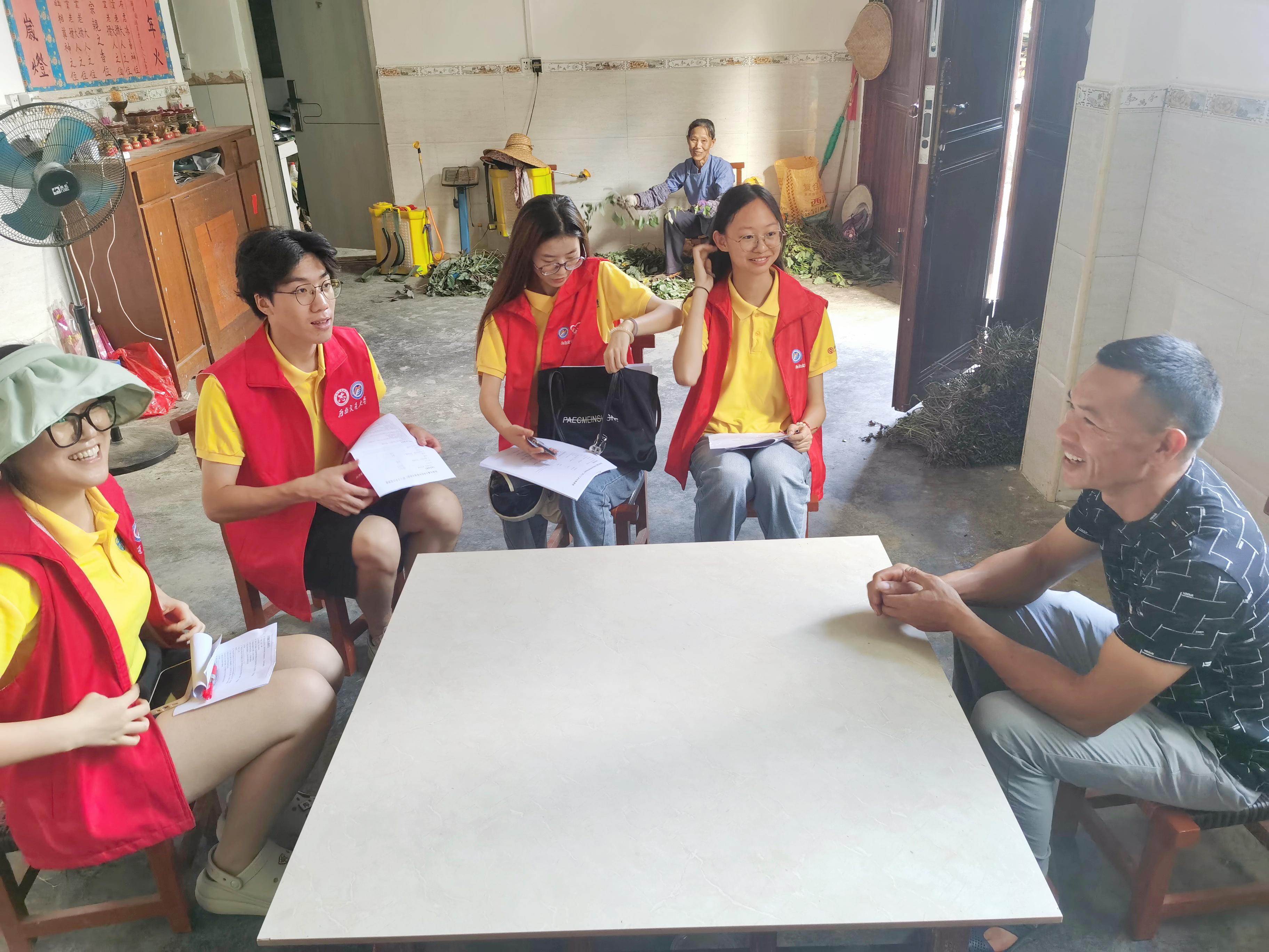 交流结束后,实践队访谈了百坭村驻村第一书记农俊海。访谈了解到,在经济发展方面,百坭村响应自治区号召,鼓励各民族共同参与农业合作社等经济组织,集体种植油茶、砂糖桔等经济作物,增加村民收入来源;在文化交流方面,村里经常举办各类民族文艺演出,各族村民共同参与民族特色活动,如壮族传统节日“三月三”、“卜隆古歌节”等,传承民族文化,加强各民族间了解和融合;在教育领域,当地所有民族的员工平等接受教育,通过课堂根植爱国主义思想和民族团结意识,推行国家通用语言文字教育,增强“四个认同”,从而保持社会面稳定和民族团结。