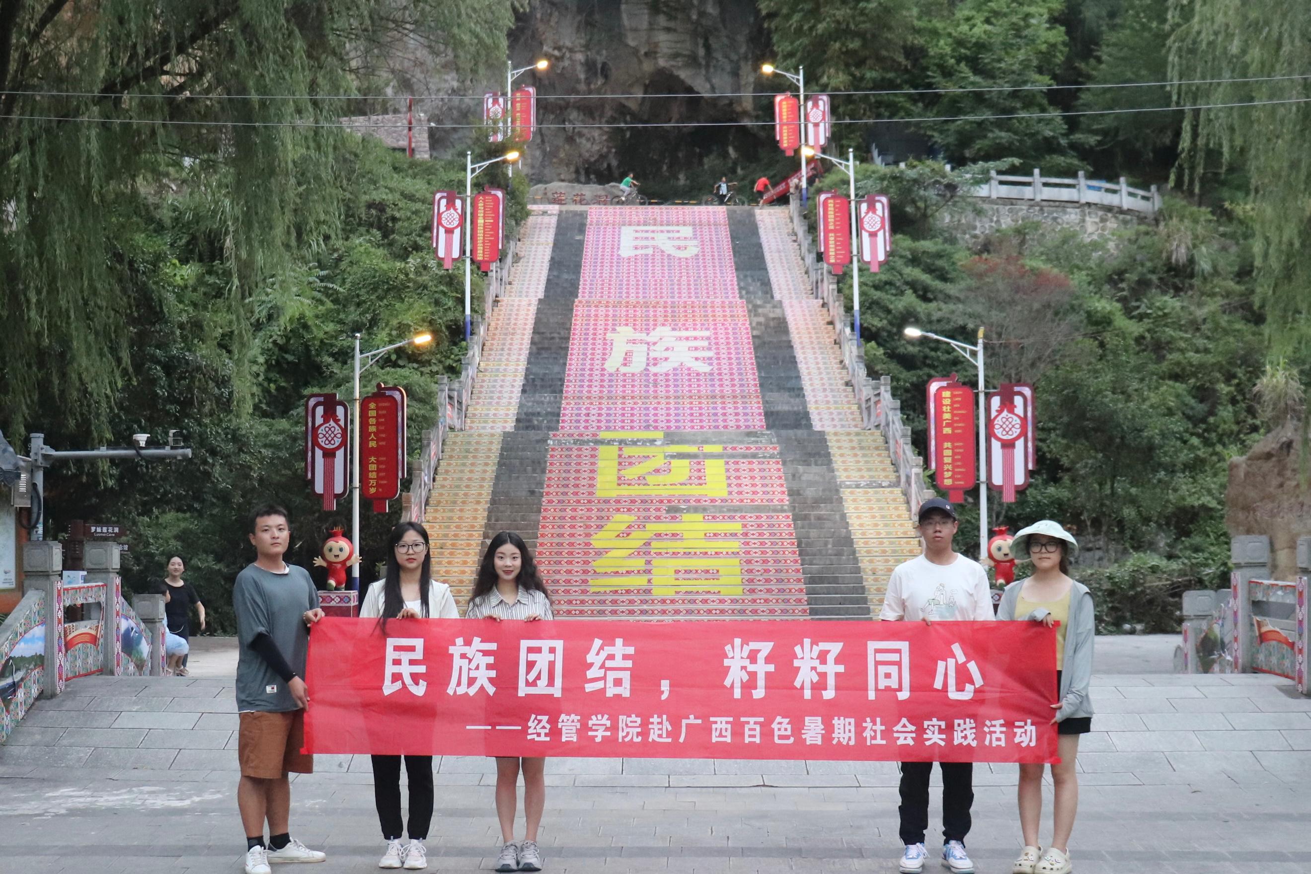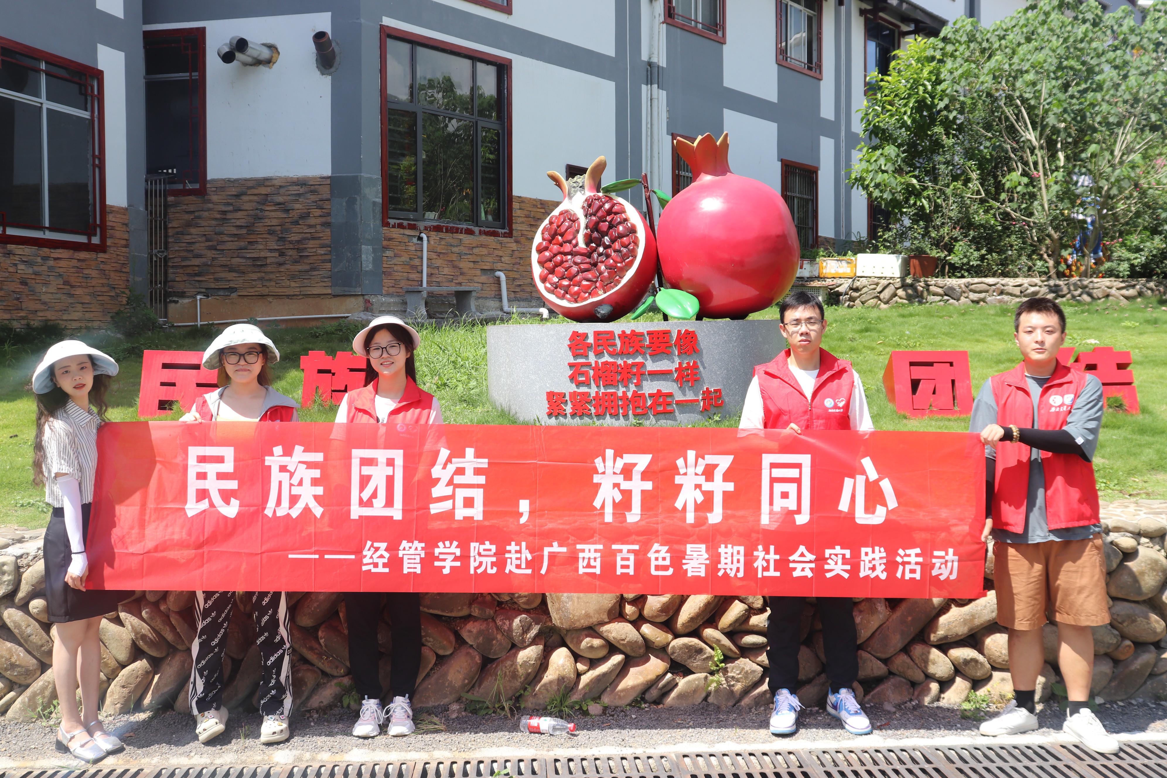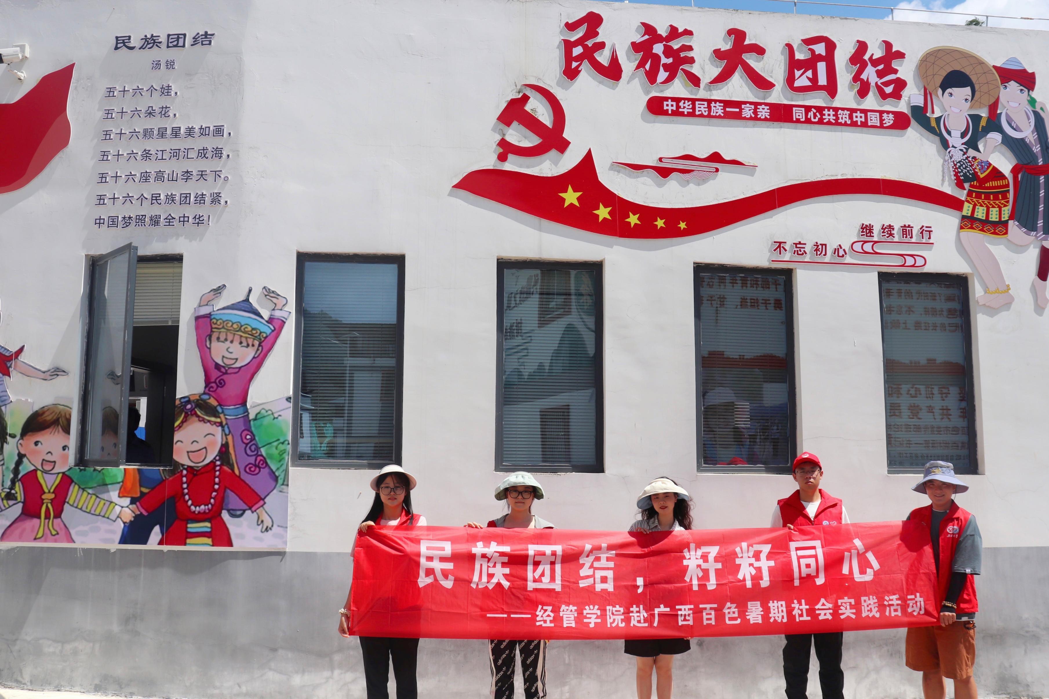 为深入学习贯彻中央民族工作会议精神、全面贯彻党的民族政策,扎实学习和广泛宣传习近平总书记关于加强和改进民族工作的重要思想、铸牢中华民族共同体意识,7月4日至7日,伟德bevictor中文版经济管理公司党委副书记杨宏毅、辅导员张先凌带领“赴广西百色宣讲中央民族工作会议精神”主题实践队赴广西壮族自治区百色市开展暑期“三下乡”社会实践活动。