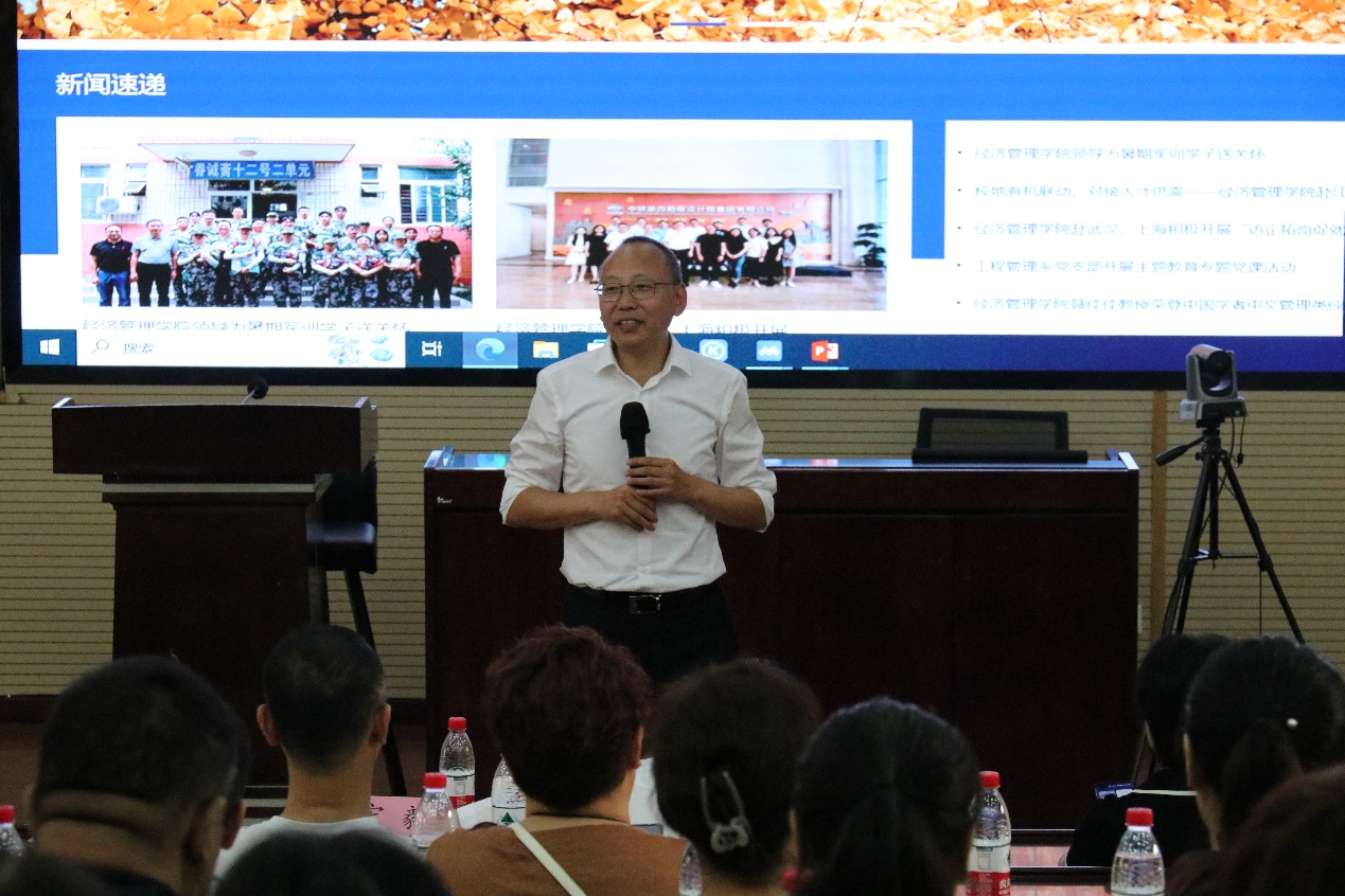 随后,杨宏毅对员工工作情况进行了介绍,从公司历史、公司基本情况、员工工作组的组成和工作职责、家长注意事项等方面展开。其中,他强调家长应注意孩子学习和生活方面的适应状况,并对安全事项做出重要提醒。为了让家长更贴近孩子的老员工活,杨宏毅老师介绍了校、院常用的官方网站和网络媒体,站在老师的角度,为老员工的未来规划提出建议。