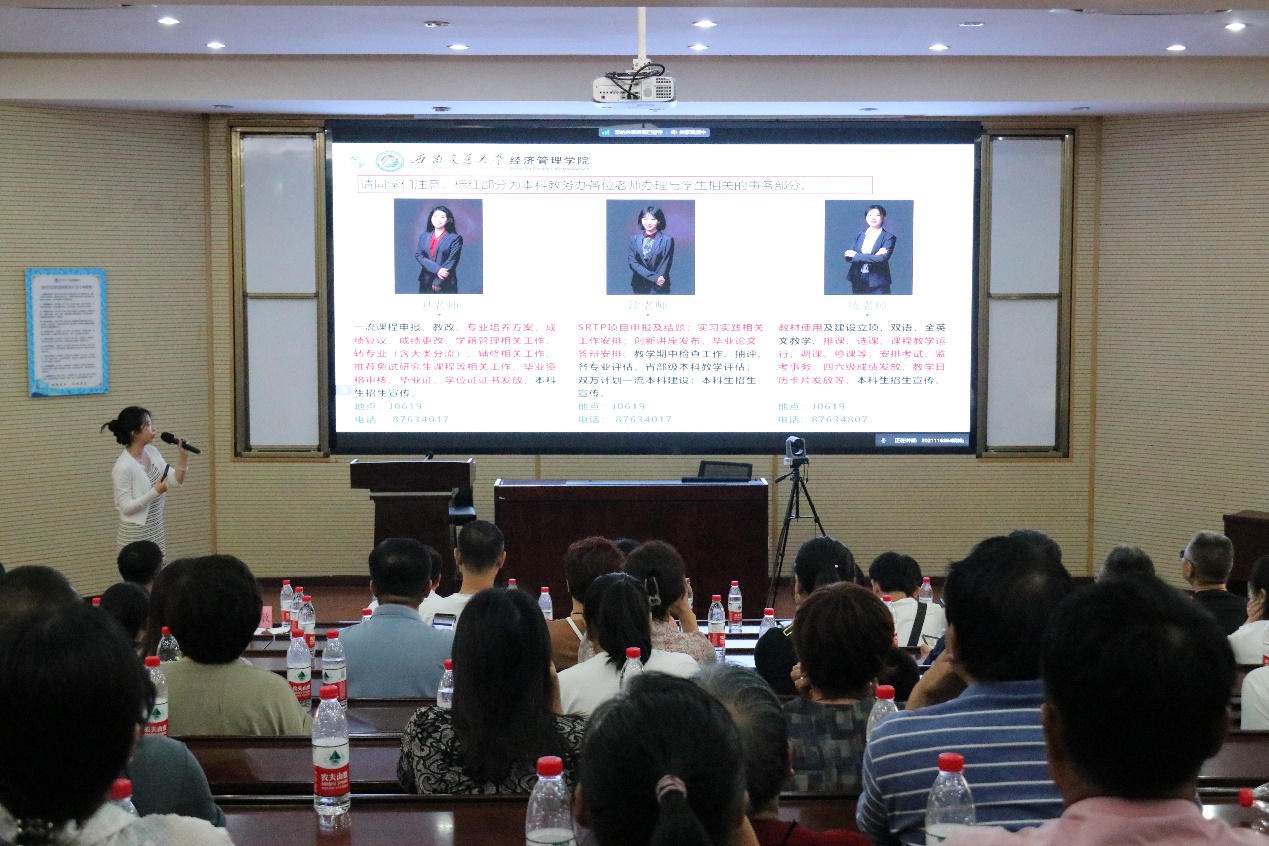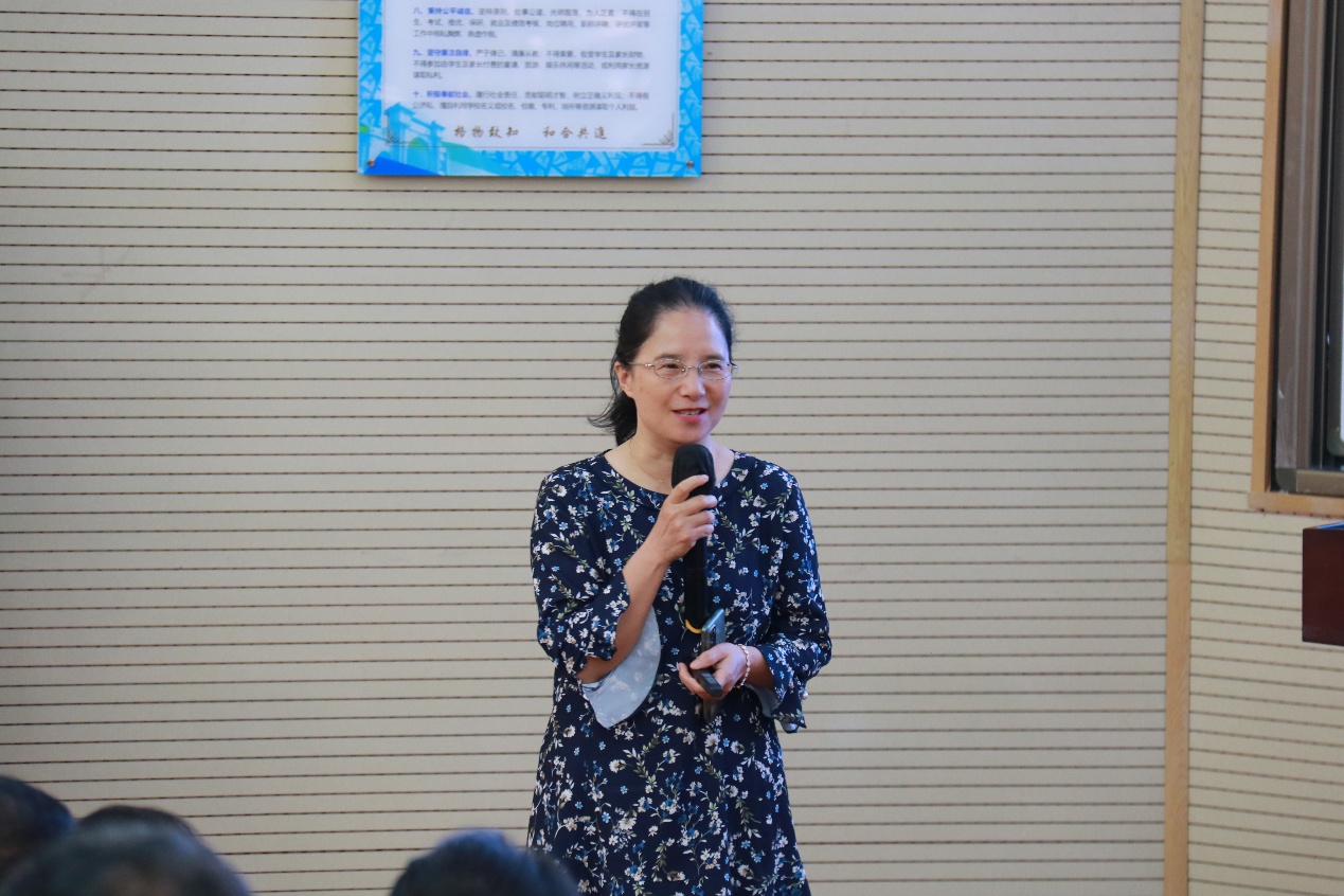 本科教育中心漆敏对教学工作内容进行适当补充。她分别介绍了本科教育中心三位老师的主要工作范畴、联系方式以及教学相关细则,并对家长关心的专业知识进行详细介绍和解答。