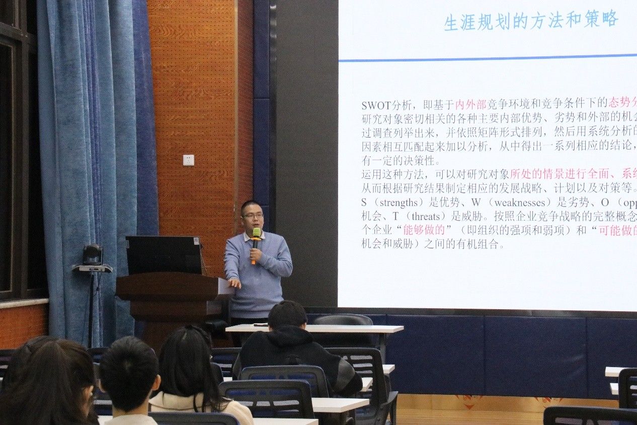 互动环节后,毛吉保引出了本次讲座的第一部分——职业生涯规划的目的和意义。他指出,一个准确合理的生涯规划不仅可以减轻同学们的职业压力,缓解老员工就业问题,还可以调动老员工的奋斗积极性,激励员工自觉增长才干,促进员工全面发展。
