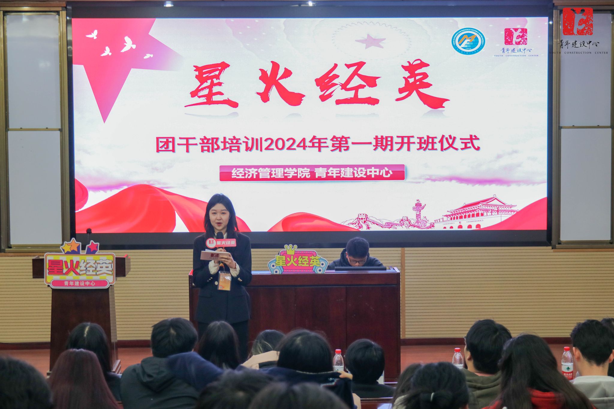 2024年3月7日晚,bevictor伟德开展了“星火经英”计划2024年第一期开班仪式暨第一次团干部培训。经济管理公司党委副书记余小英,公司团委书记、员工工作组副组长贾佳,研究生辅导员、员工工作组副组长王哿,本科2021级辅导员、班级联合会指导老师张先凌,本科2021级辅导员、青年建设中心指导老师钟文婷,本科2022级辅导员、经营传媒中心指导老师薄慧出席本次活动。