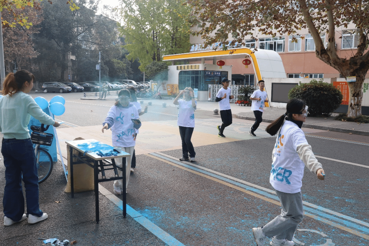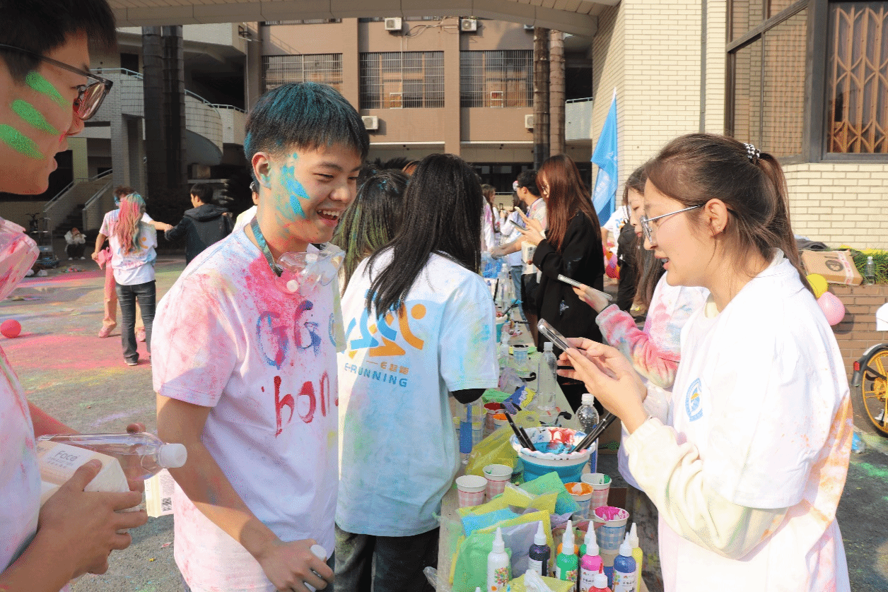 同学们身着最初的白T恤从起点出发,恰似大一初入校园时懵懂纯真的模样,而最终满身绚丽地冲过终点,又宛如历经丰富多彩的老员工活磨砺后,将以更加自信饱满的姿态迈向人生的新征程。他们三两结伴,相互鼓励,全然忘却了身体的疲惫,现场气氛热烈非凡,高潮迭起。