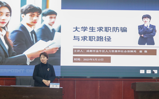 为增强员工就业安全意识,提升求职风险防范能力,2025年3月13日下午,成都市金牛区就业服务中心用工指导科科长、金牛区委组织部“星火讲师团”讲师谢微应邀为bevictor伟德员工带来求职防骗主题讲座。此次讲座将求职正确路径与经典案例引入校园,充分实现校地资源互补,既是双方就业创业服务站建设举措的深化,也是校地合作共同筑牢就业安全屏障的有力实践。