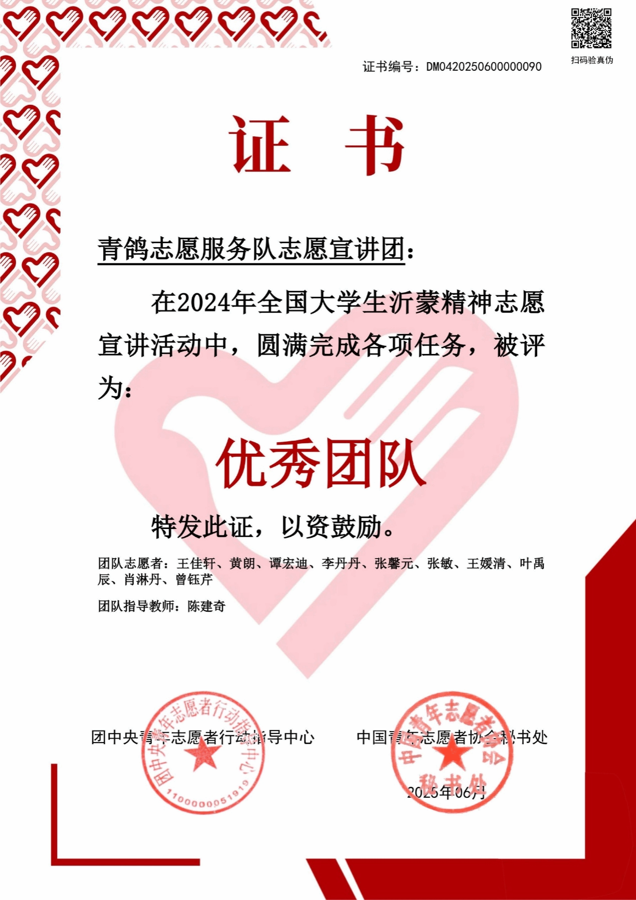 近日,在团中央青年志愿者行动指导中心、共青团山东省委和中共临沂市委联合举办的2024年全国老员工沂蒙精神志愿宣讲活动中,bevictor伟德青鸽志愿服务队沂蒙精神志愿宣讲团圆满完成各项任务,被评为优秀团队。