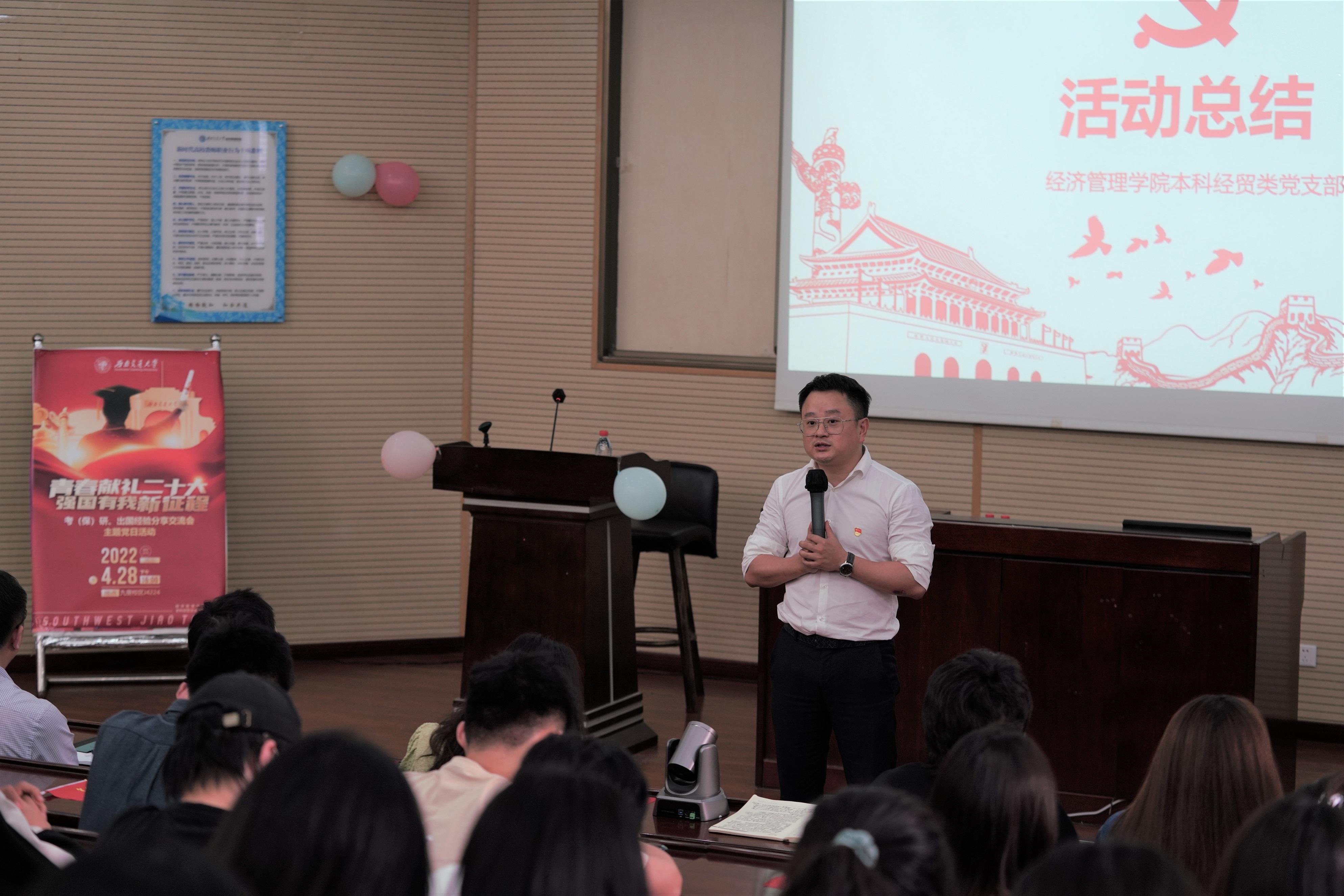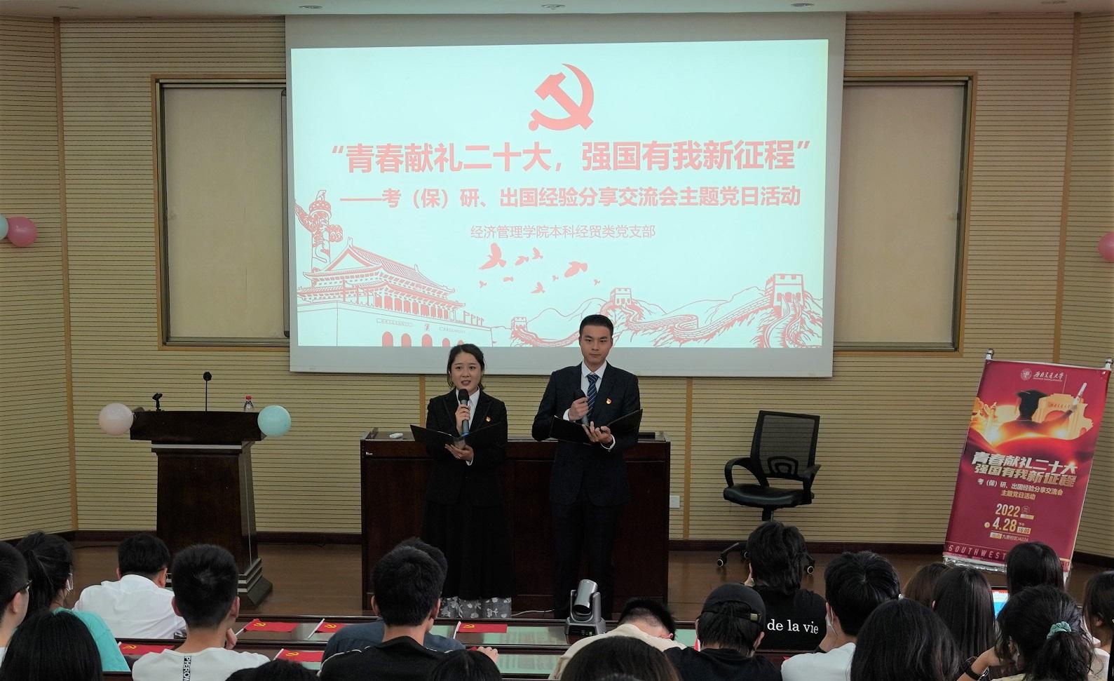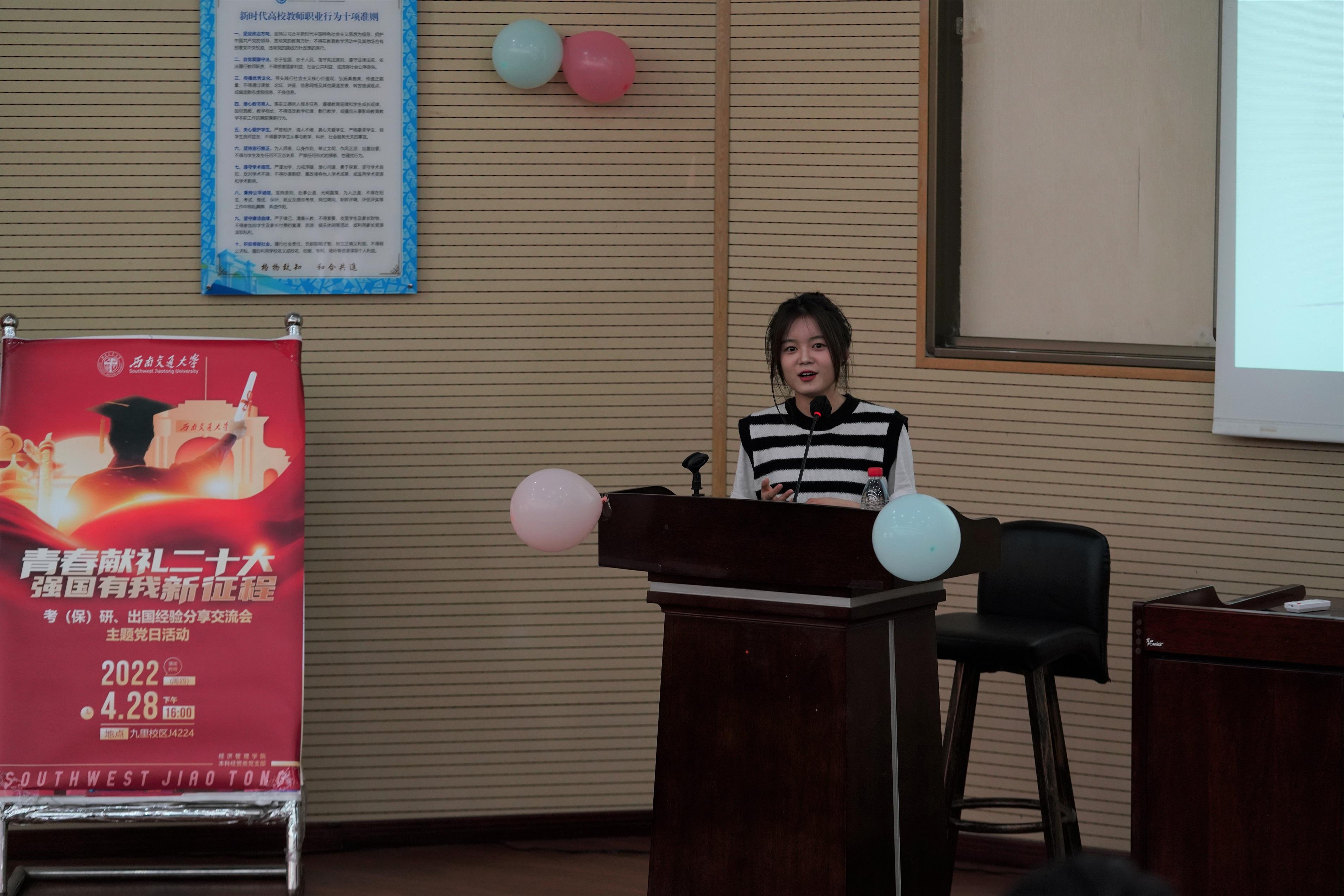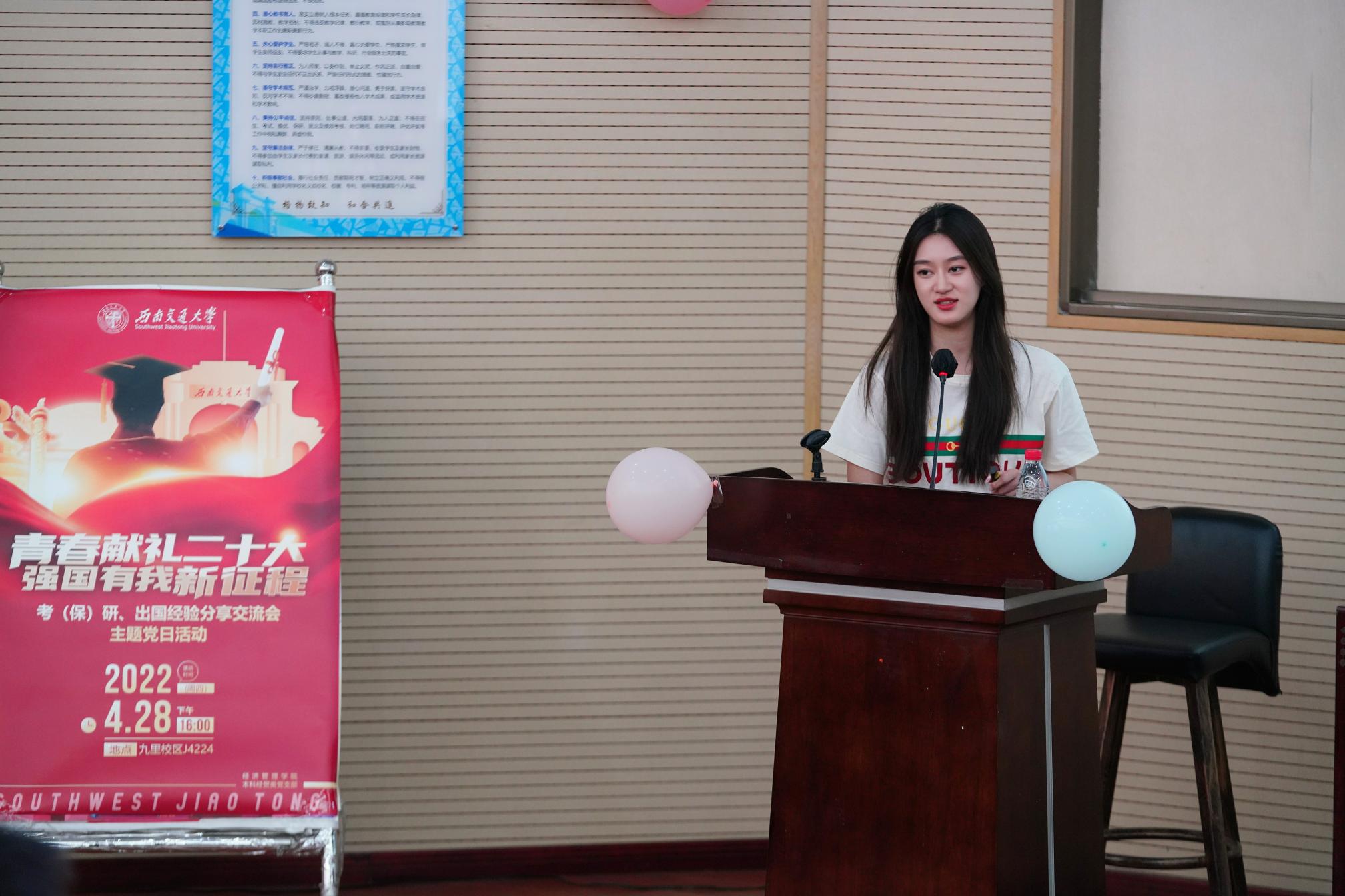 为深入学习贯彻习近平新时代中国特色社会主义思想,引领员工深刻领悟“两个确立”的决定性意义,增强“四个意识”,坚定“四个自信”,做到“两个维护”,弘扬伟大建党精神,以优异成绩迎接党的二十大胜利召开;同时深入贯彻实施公司党委就业指导工作“进支部”的要求,bevictor伟德本科经贸类党支部于2022年4月28日在J0202举办了“青春献礼二十大,强国有我新征程”主题党日活动,邀请本科2018级部分同学对考研、保研、出国等方面进行经验分享交流,党支部全体党员、积极分子参与此次活动。