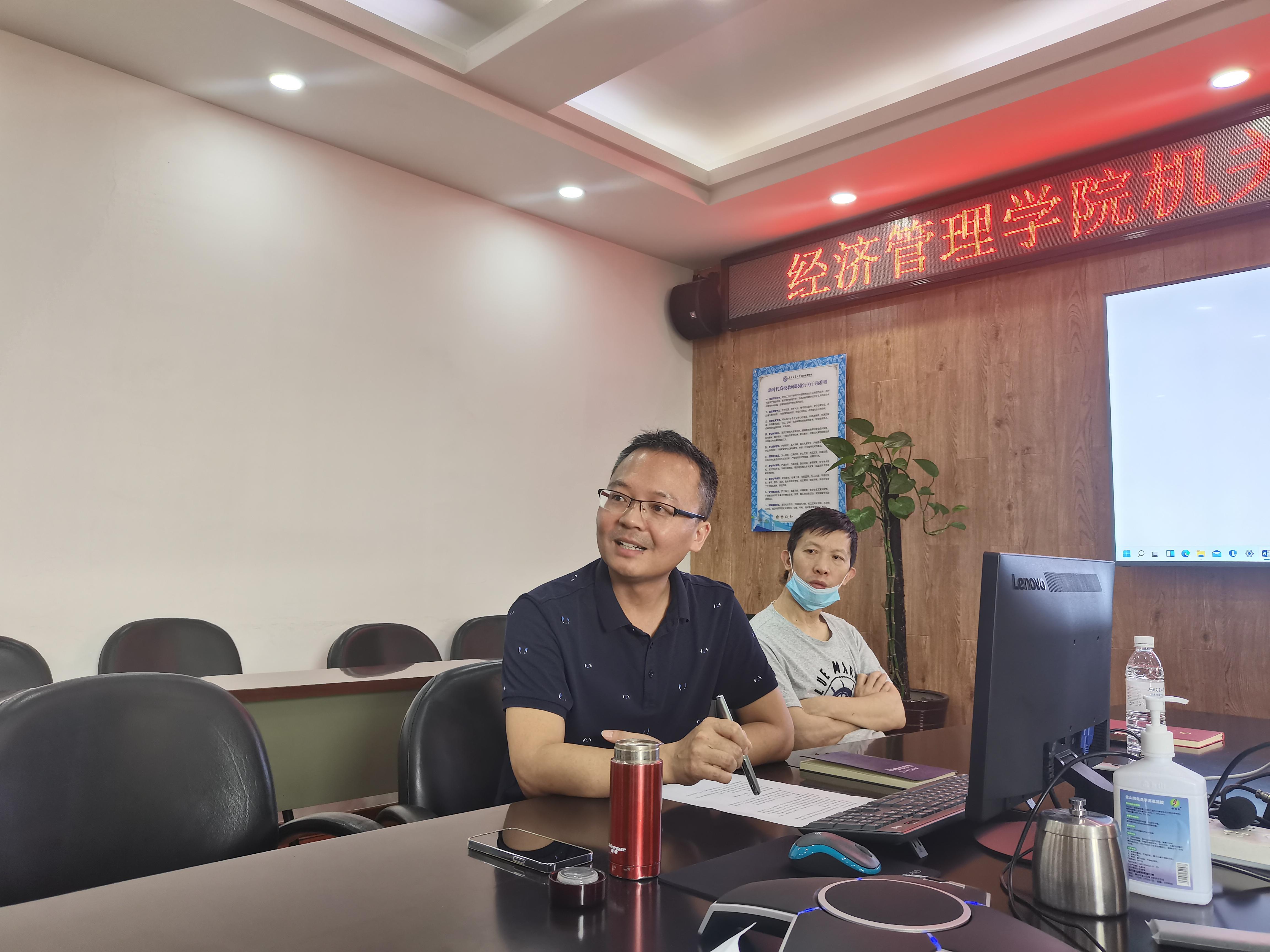 活动首先请支部党员何鹏同志向大家讲述了参加脱贫攻坚和乡村振兴工作的经历和感想。何鹏同志现任公司专业学位教育中心副主任。自2020年3月起,他受公司委派远赴甘肃省天水市秦安县王尹镇胡坪村担任驻村第一书记兼帮扶工作队长。在两年多的帮扶工作中,何鹏同志全身心投入地方各项工作,为当地脱贫攻坚和乡村振兴事业出谋划策、帮办实事,以实际行动践行了“交大担当”,展现了经管人踏实肯干的优良工作作风。