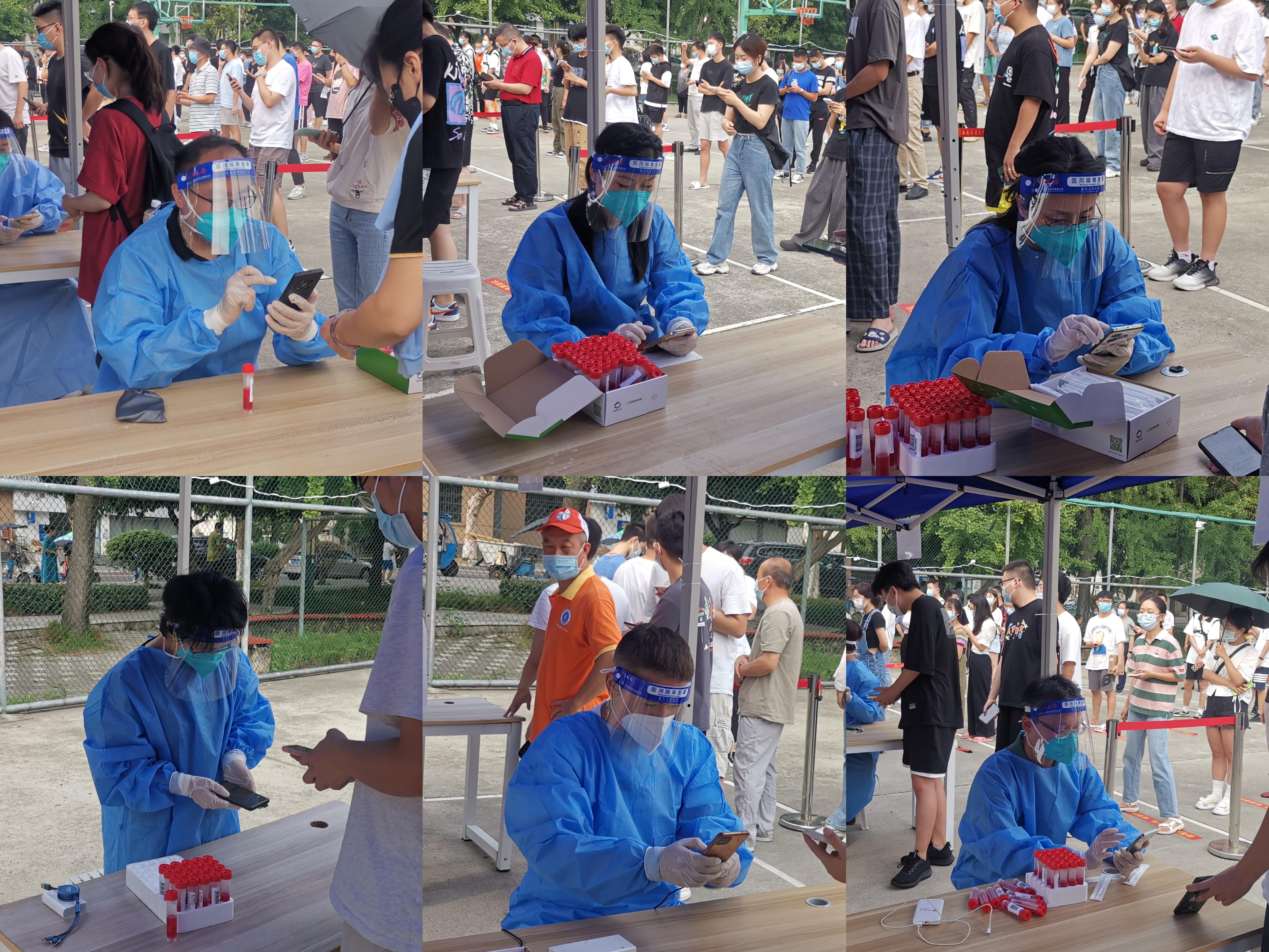 一个党员就是一面旗帜。公司党员志愿者老师们主动“戴党员徽章、亮身份、当先锋、作表率”,迅速投身到疫情防控一线。他们耐心细致地开展核酸检测扫码、粘贴试管码、准备检测物品、维持核酸检测秩序等工作,大家在工作中分工明确、认真负责,从下午4:00持续到晚上10:00,各项工作有条不紊进行。党员为先锋、群众为主力的坚强战“疫”堡垒作用彰显,在九里校区形成了联防联控的强大合力。