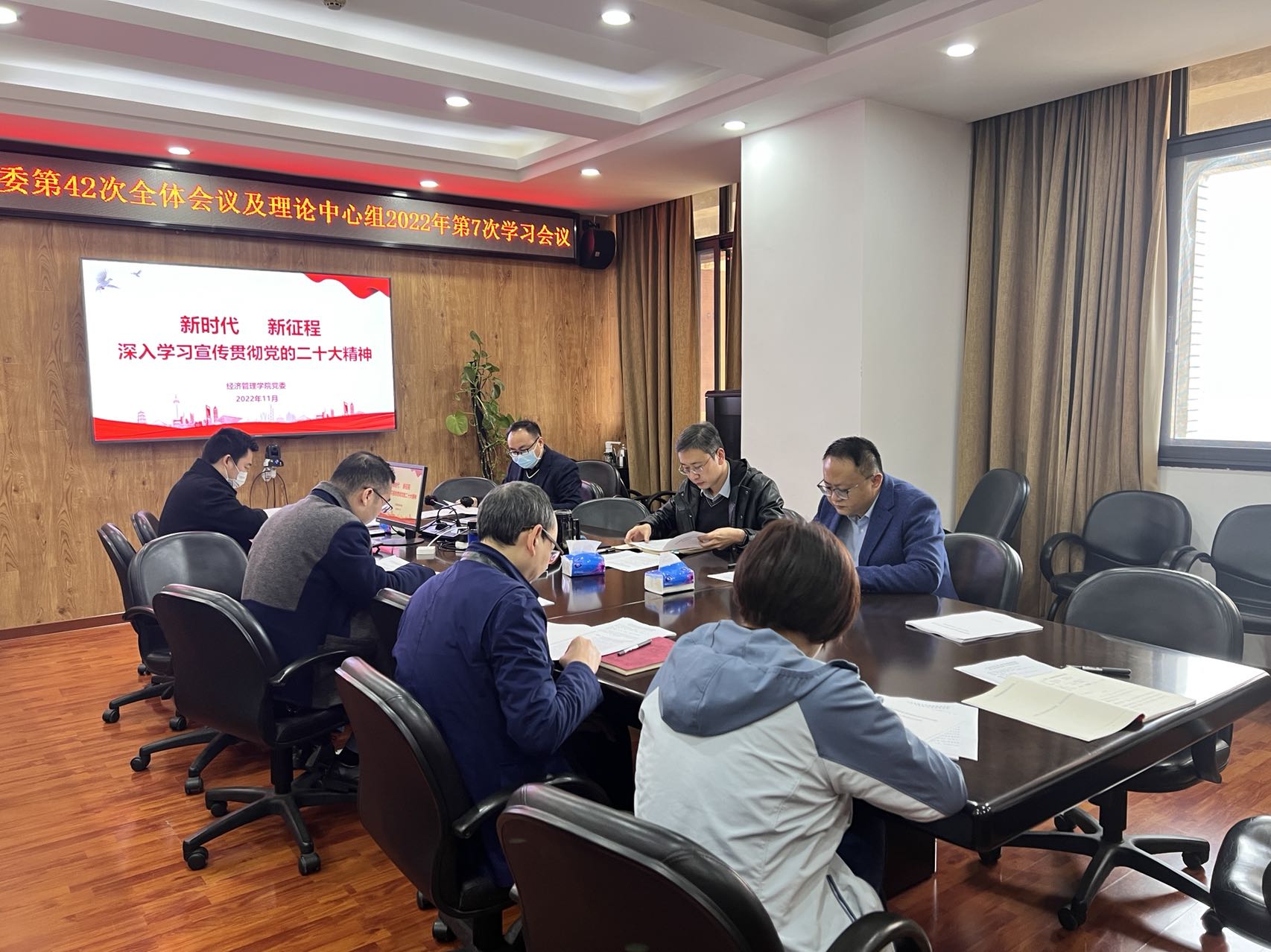 2022年11月24日上午10:30,bevictor伟德第五届党委召开了第42次全体会议及理论中心组2022年第7次学习会议,专题研究布置学习领会贯彻落实党的二十大精神,领导班子全体成员进行了专题学习。