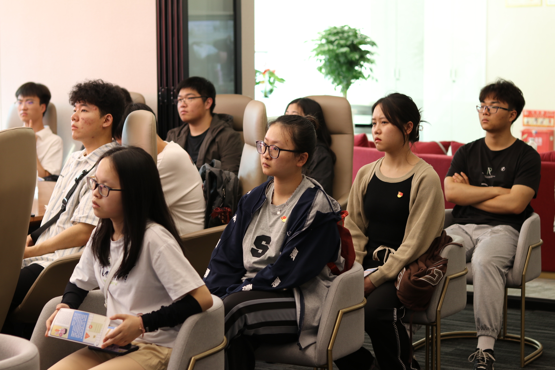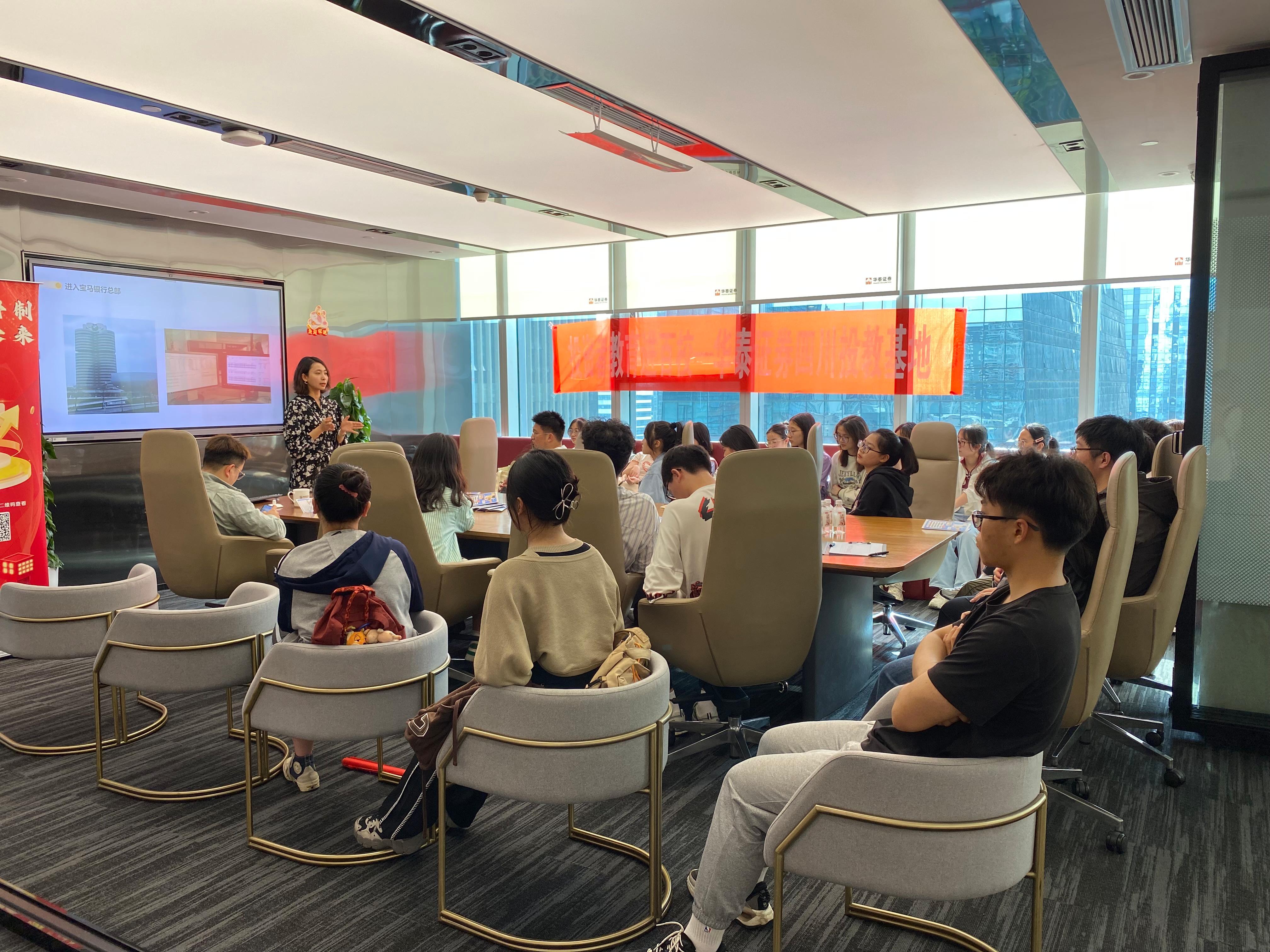 在华泰证券嘉宾分享环节,华泰证券的刘筑老师首先带领大家参观了华泰证券投教基地和办公区域。在参观完工作场所之后,她向大家介绍了华泰证券的发展历程、主营业务范围、校招岗位要求等内容。华泰证券1991年5月开业,紧随中国上交所、深交所的成立。在长足的发展中,实现了快速成长,成为第一家在上海、香港和伦敦三地上市的中国金融机构。公司注重科技驱动,营业部及分公司数量精简,业务覆盖广泛。2020年7月,2020年《财富》中国500强发布,华泰证券股份有限公司排名第366位。2020年获得“十大证券公司金牛奖”。通过刘筑老师的讲解,大家对券商架构、岗位内容、用人标准有了更加清晰、具体的认识。在分享中,刘老师提到,在校时一定要提前规划,注重实践、积累实习经验,要大胆自信,将上一次的积累应用到下一次的机会中。