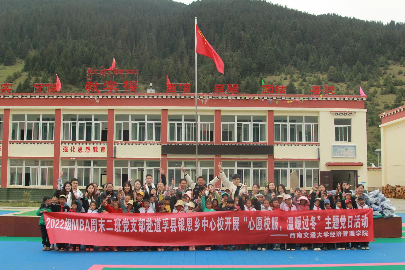 千里之行送爱心,百件新衣传真情。交大学子高原聚,共谱民族教育兴。6月10日,由2022级MBA周末二班临时党支部发起的“心愿校服·温暖过冬”主题党日活动在甘孜州道孚县银恩乡中心校如期举行。该活动不仅为银恩乡中心校100余名孩子送上了新校服、新书包和学习用品,更送去了西南交大莘莘学子的暖暖爱心。