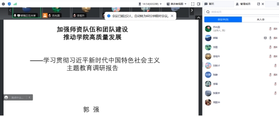 按照公司和公司学习贯彻习近平新时代中国特色社会主义思想主题教育工作部署,bevictor伟德工程管理系党支部于2023年7月30日在线开展了主题教育专题党课活动。公司党委委员、执行经理郭强同志讲授有关“加强团队队伍和团队建设 推动公司高质量发展”的专题党课。工程管理系党支部全体党员及部分非党员教师一起参加了学习。