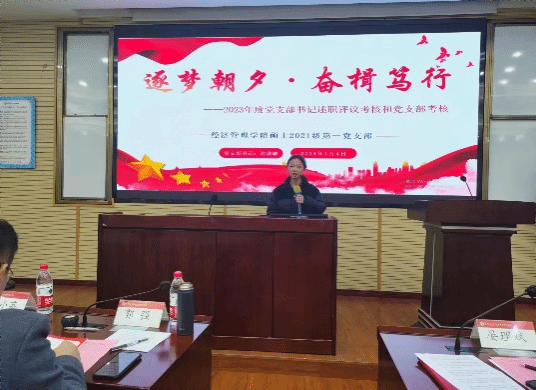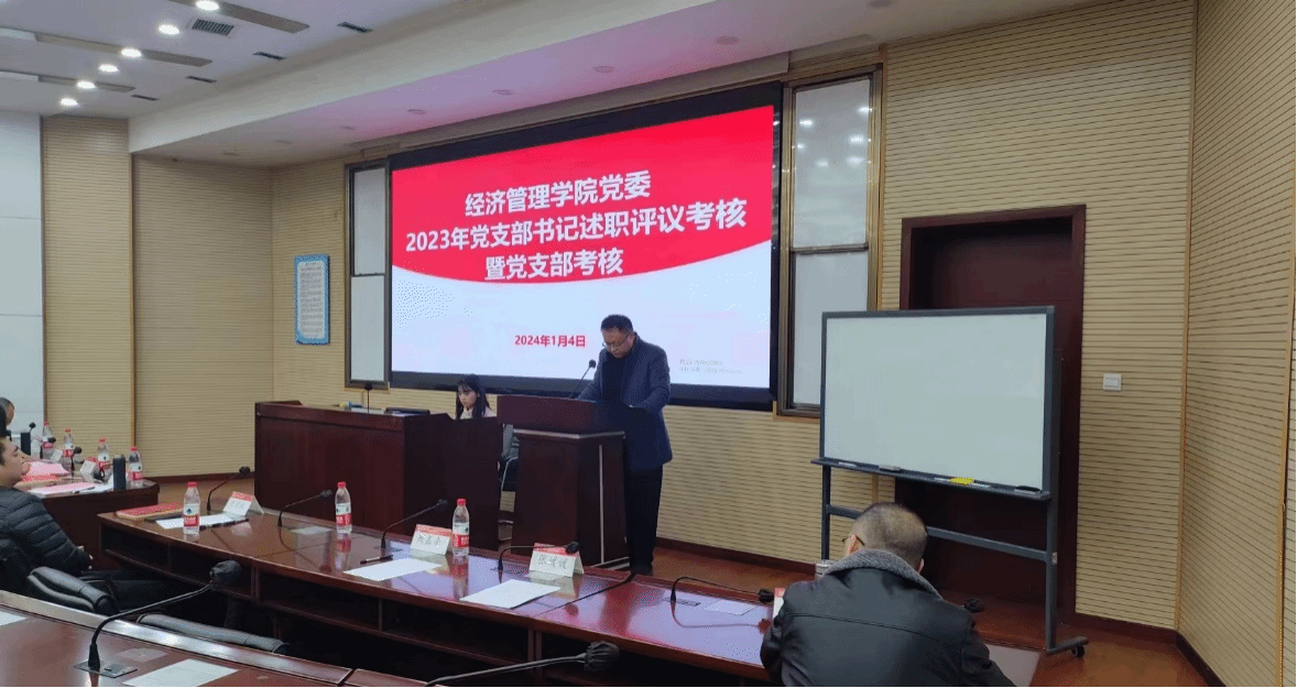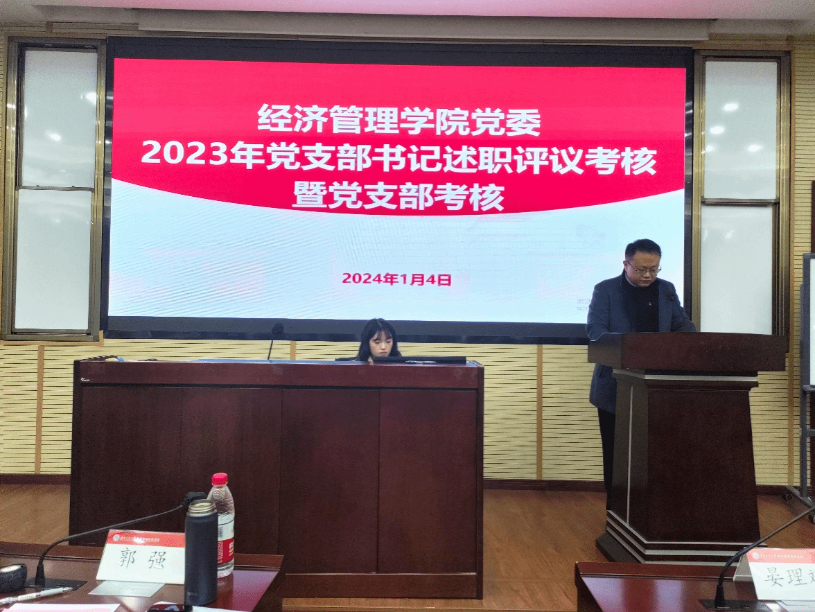 2024年1月4日下午,经济管理公司党委2023年度党支部书记述职评议考核和党支部考核会议在九里校区零号楼0204教室举行。公司领导班子成员、党委委员、专职组织员以及师生各党支部书记参加并完成了现场考核评分,会议由公司党委书记郭强主持。